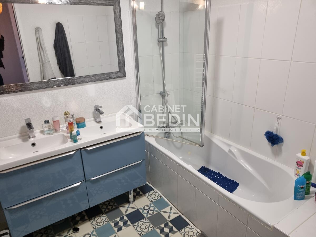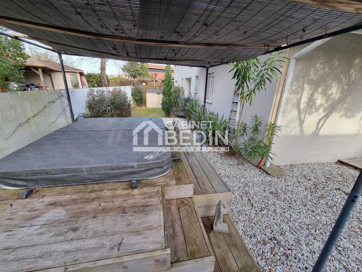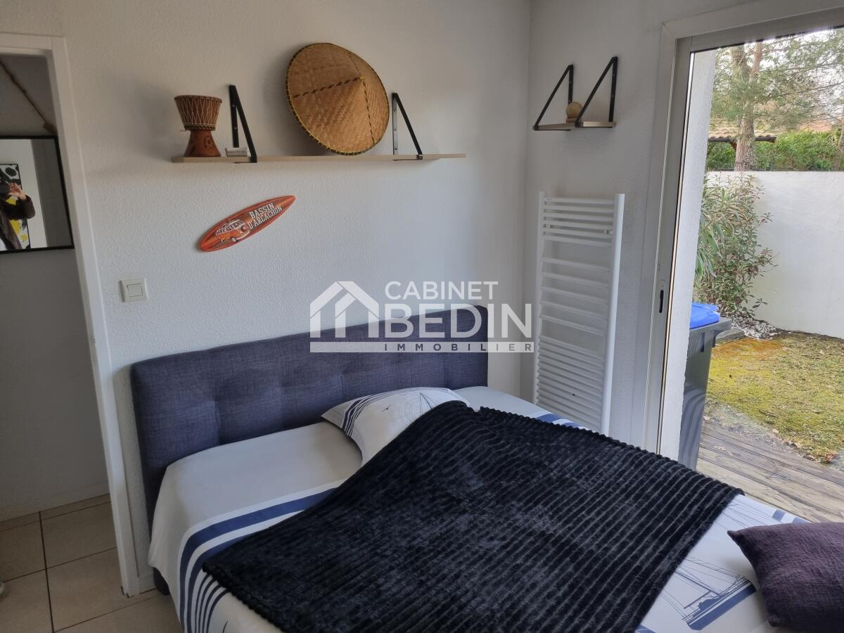 ARES. À quelques pas du centre d?Arès et de la plage, cette maison mitoyenne. Elle dispose d'un séjour lumineux et spacieux, d'une cuisine ouverte sur le séjour, d'une suite parentale avec SDE au RDC et 2 chambres à l'étage avec une SDB et un WC,un garage, climatisation et jacuzzi.