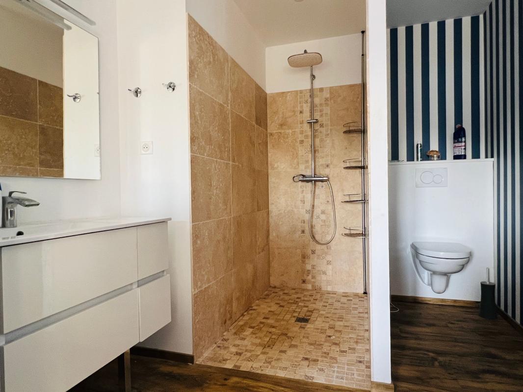 Vous aimerez cette maison lumineuse de plain pied (2019) au calme, sans vis à vis et vous serez à 5 mn à vélo du port et du marché. Elle est composée d'une grande pièce de vie, une cuisine aménagée et équipée, 3 chambres soit 2 avec une salle d'eau et une suite parentale avec une salle d'eau/wc et un dressing. Puis pour votre confort vous disposez d'un cellier, une lingerie, une grande arrière-cuisine et deux garages, le tout sur une parcelle de 600m² environ ou la vie s'organise autour de son jardin arboré. Possibilité de créer facilement en rez-de-chaussée 1 à 2 chambres supplémentaires, une salle d'eau et un étage (Zone UB).
