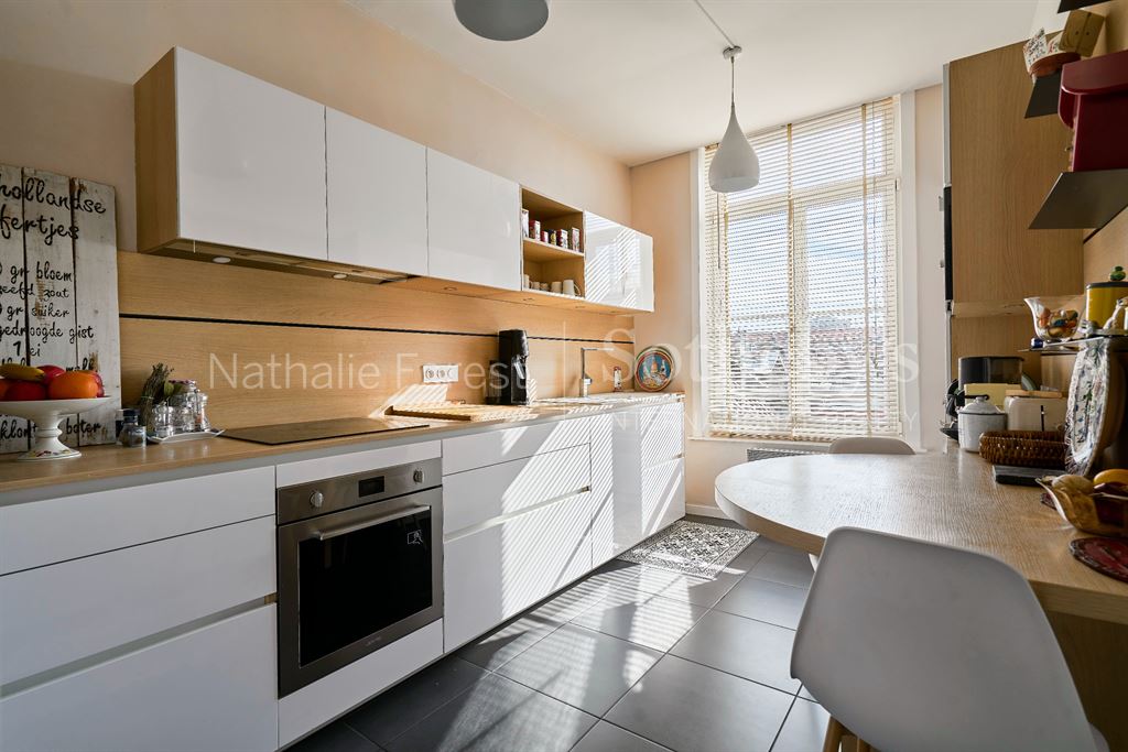 Une belle cuisine séparée, récemment rénovée (2020), est accessible depuis le living. Elle offre de nombreux rangements, des équipements électroménagers encastrés de "haut de gamme" et un espace repas quotidien.