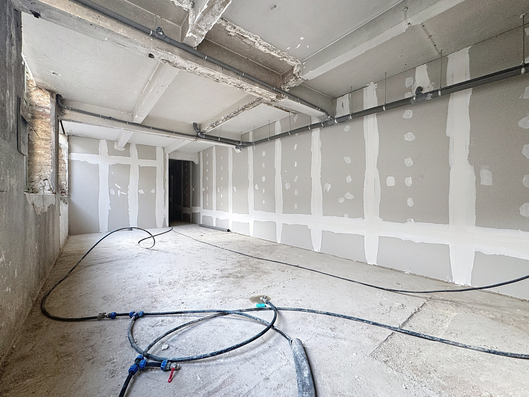 Située en demi sous-sol mais avec de grandes ouvertures sur l'extérieur ce plateau est très lumineux. Toutes les arrivées d'eau et d'électricité sont existantes et les huisseries sont en bon état. Les communs sont neufs.