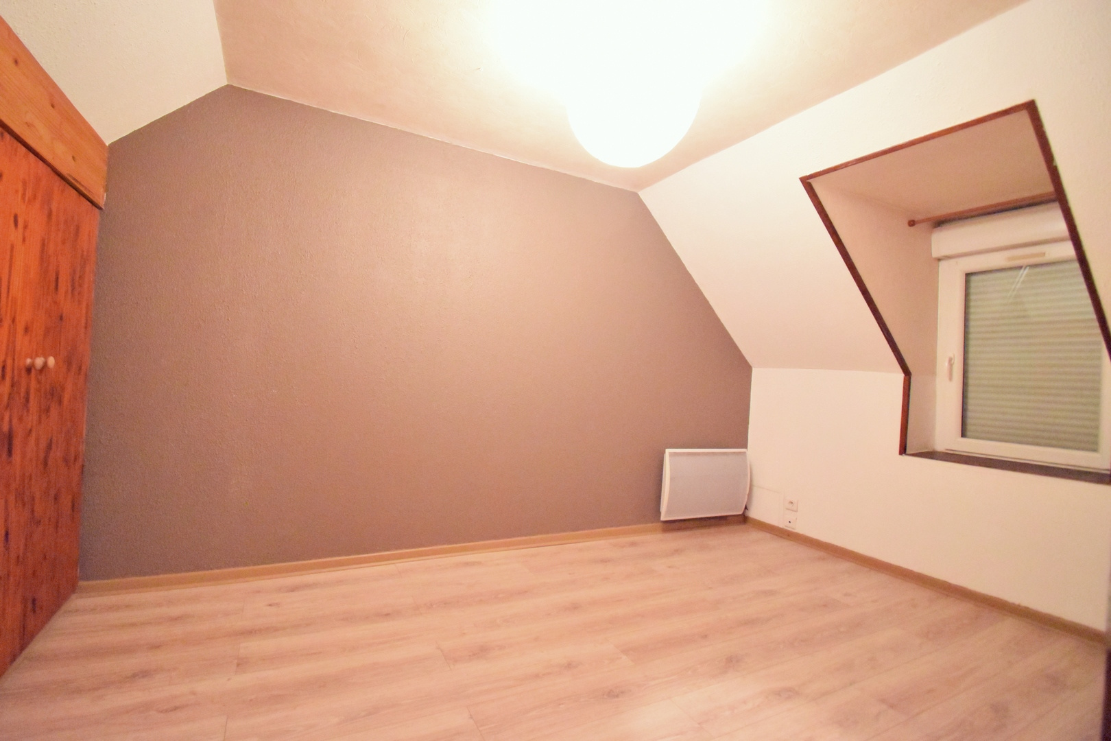 Maison située à Yzeure, composée d'une cuisine ouverte sur un séjour - salon avec poêle à granulés, une salle d'eau, un wc. A l'étage : un bureau, une chambre.