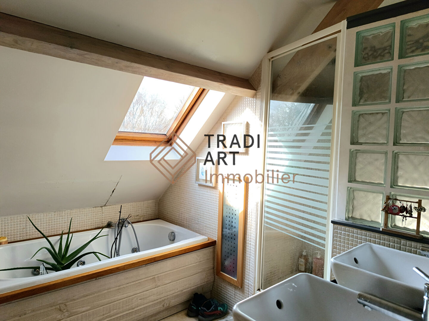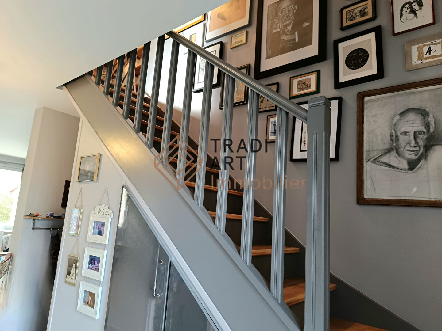 À l'étage : un dégagement desservant 3 chambres, un bureau, un dressing, une salle de bains avec baignoire et douche, ainsi qu'un WC séparé.