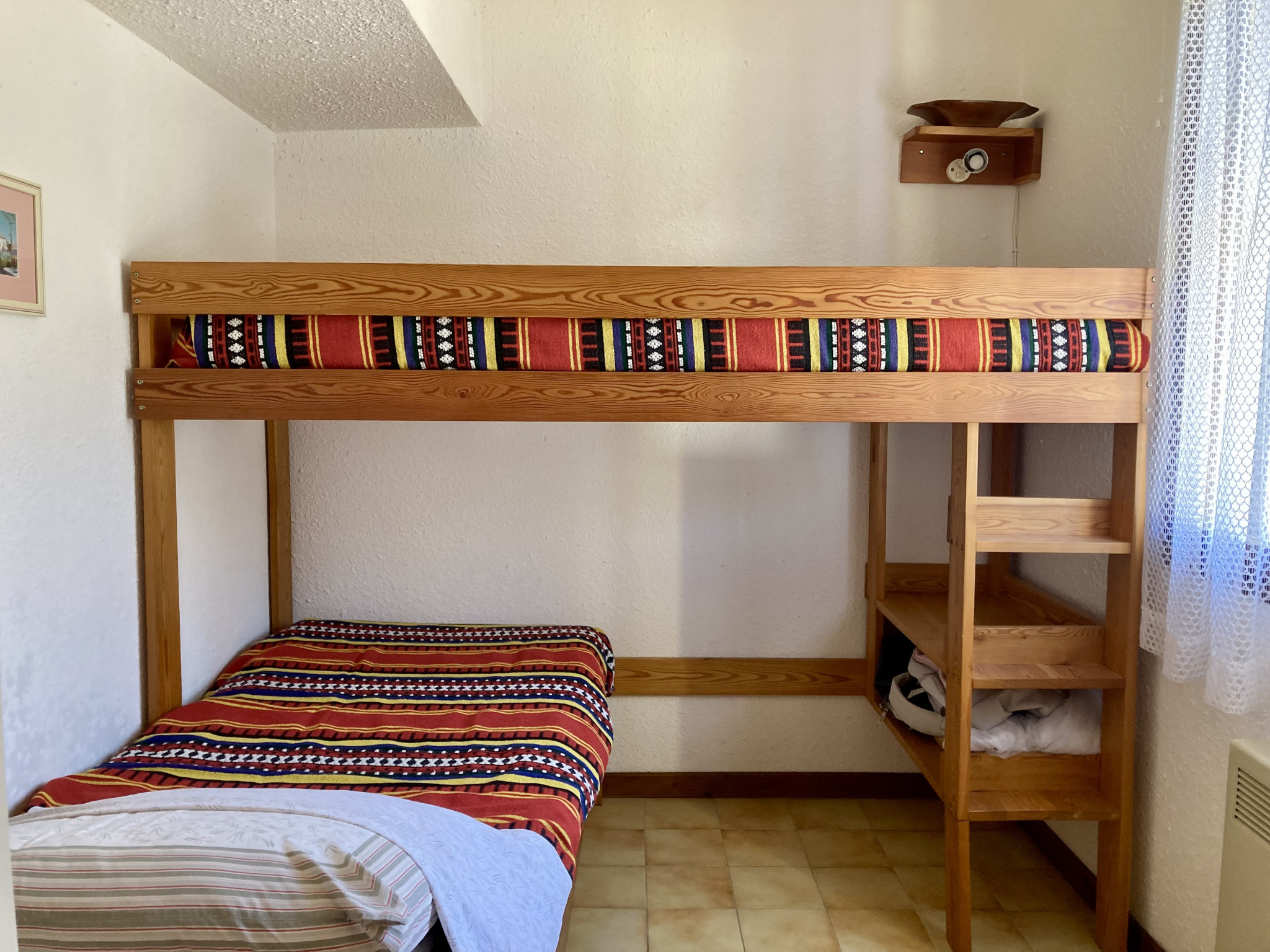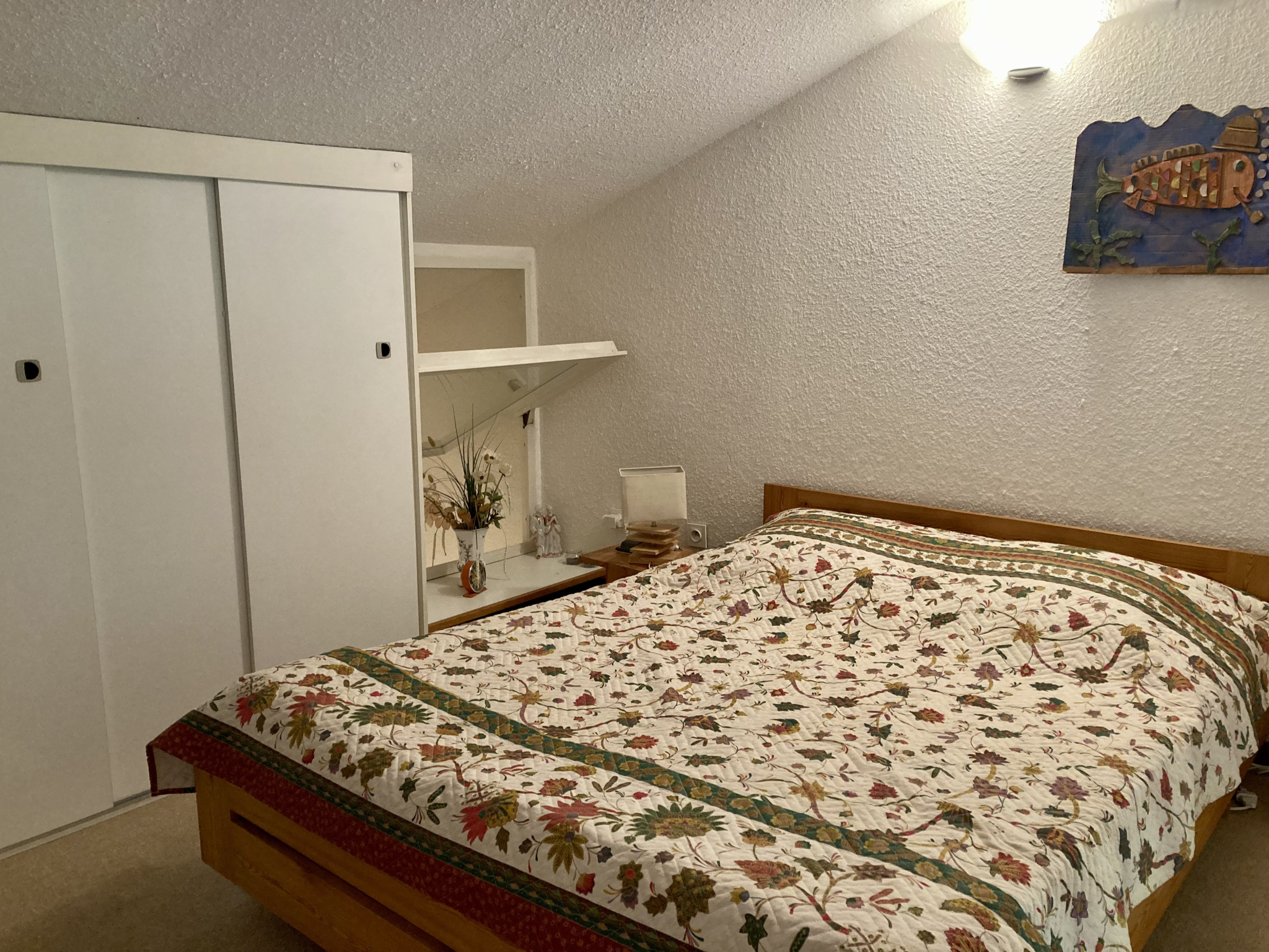 L'appartement se compose d'un séjour avec coin cuisine, d'une salle d'eau avec WC, d'un coin nuit, ainsi que d'une chambre en mezzanine.