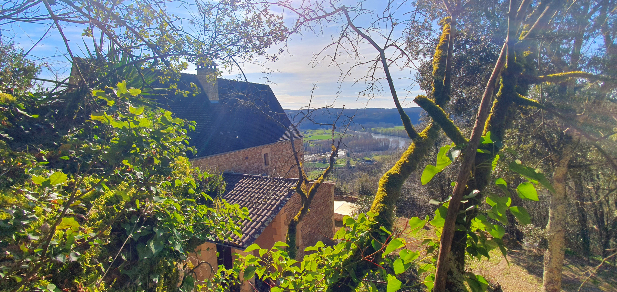 AU rez-de-chaussée comprenant une belle salle à manger, une cuisine somptueuse et un salon communicant offrant une vue magnifique sur la vallée de la Dordogne.Chambre et salle d'eau lumineuses grâce à de belles baies vitrées.