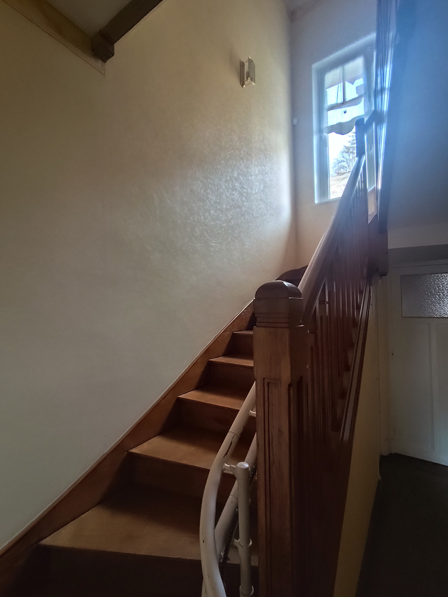 En dernier lieu cet escalier en bois mène au troisième étage qui comprend une dernière chambre avec sa salle de bain et une partie comble non aménagée.