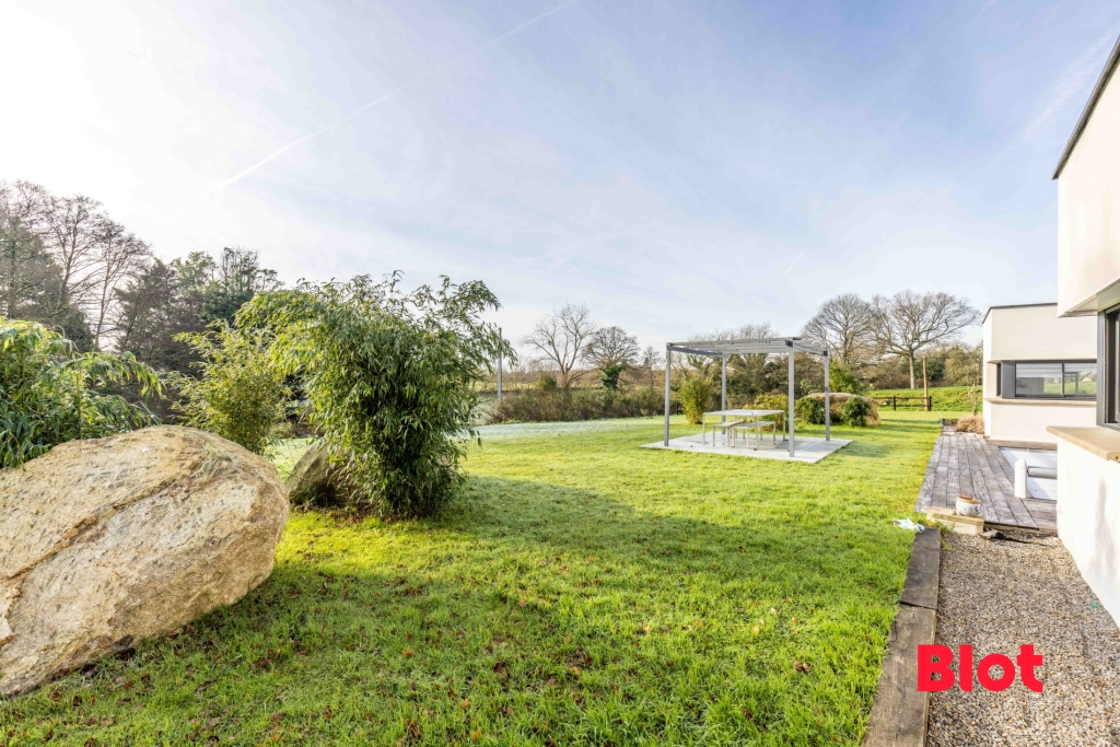 L'agence BLOT IMMOBILIER de FOUGERES vous propose à la vente cette SUPERBE maison CONTEMPORAINE de 2018 sur la commune des PORTES DU COGLAIS, en PARFAIT ETAT & à proximité de l'A84.