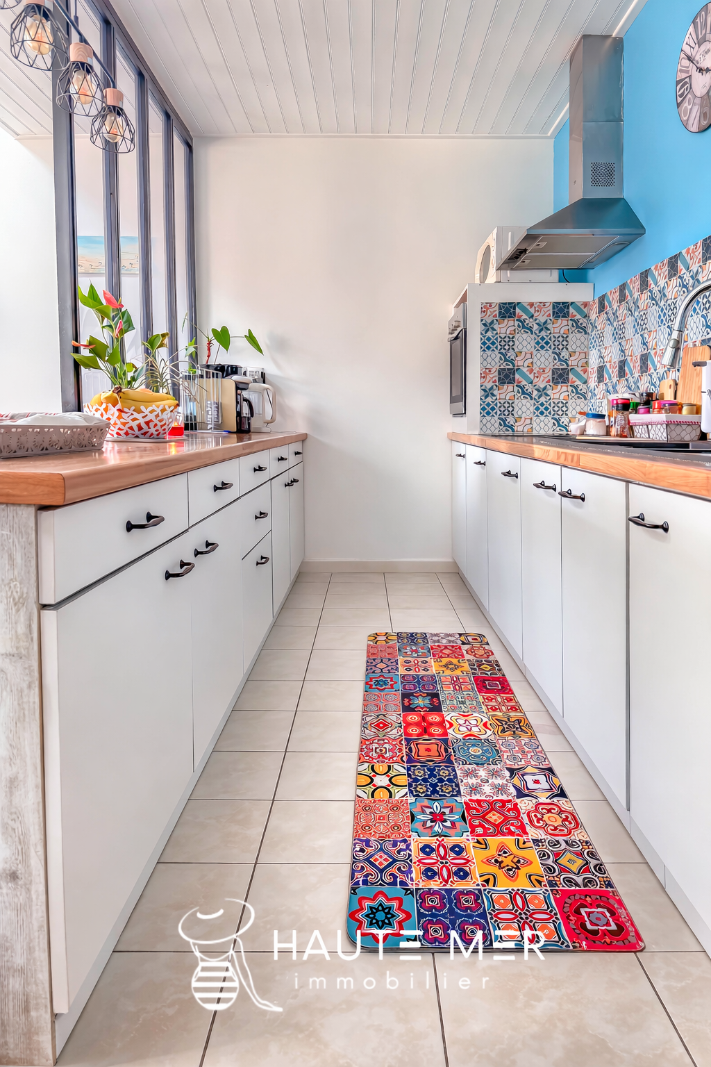 À seulement 500 mètres du lac de Tanchet, au sein d'une résidence privée avec piscine, cette maison offre un cadre de vie privilégié, entre océan et douceur de vivre. Le séjour d'environ 30 m2, baigné de lumière, s'ouvre harmonieusement sur une terrasse et un jardinet exposés plein sud, invitant à profiter pleinement des beaux jours. La cuisine équipée, intégrée à l'espace de vie, crée une atmosphère conviviale et fonctionnelle, idéale pour les séjours en famille ou entre amis. L'espace nuit se compose de trois chambres ainsi que de deux salles d'eau, permettant d'accueillir confortablement famille et invités. À quelques pas de la plage et des commerces, cette maison incarne un lieu résolument tourné vers une ambiance vacances, où tout se fait à pied, au rythme des marées et du soleil. retrouvez toutes nos annonces sur www.hautemerimmobilier.com