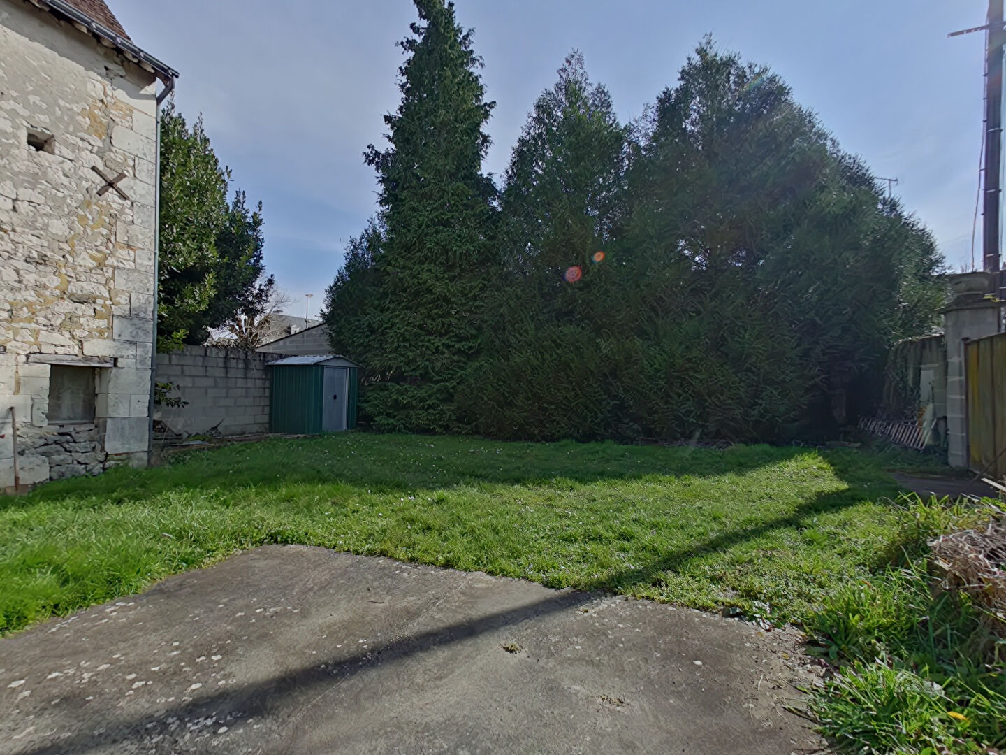 A l'extérieur, terrain attenant et terrain en face de la maison avec dépendances pour stockage.