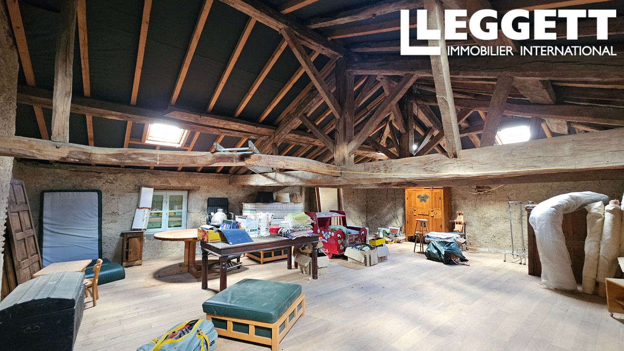 Le rez-de-chaussée comprend un hall d'entrée, un salon, un bureau/chambre, une cuisine équipée, une buanderie, une salle de bain et une chaufferie. Un escalier en pierre mène à trois chambres spacieuses, un sauna et une salle de bain. Le grenier offre un potentiel supplémentaire. À l'extérieur, une cour isolée, une grange de 120 m², un puits, un portail électrique et un jardin en plusieurs niveaux. Une ancienne métairie de 70 m² attenante attend rénovation--idéale pour une maison d'hôtes ou un gîte. La propriété bénéficie du tout à l'égout, de fenêtres double vitrage, d'un chauffage au fioul et de rénovations récentes de toiture et de façades.
