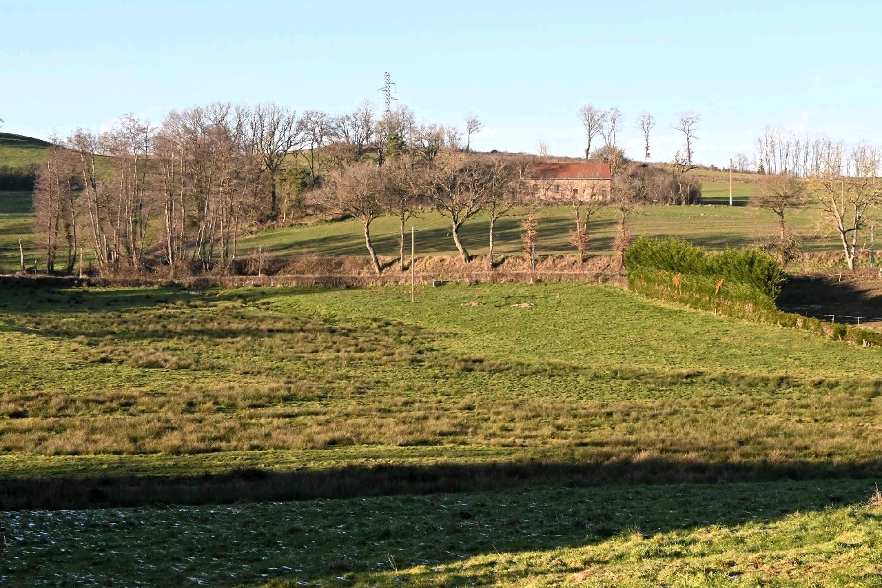 Le terrain attenant de plus d'1 ha comprend un espace en herbe et taillis autour de la maison et une parcelle de pré de 7300m² actuellement louée et exploitée.