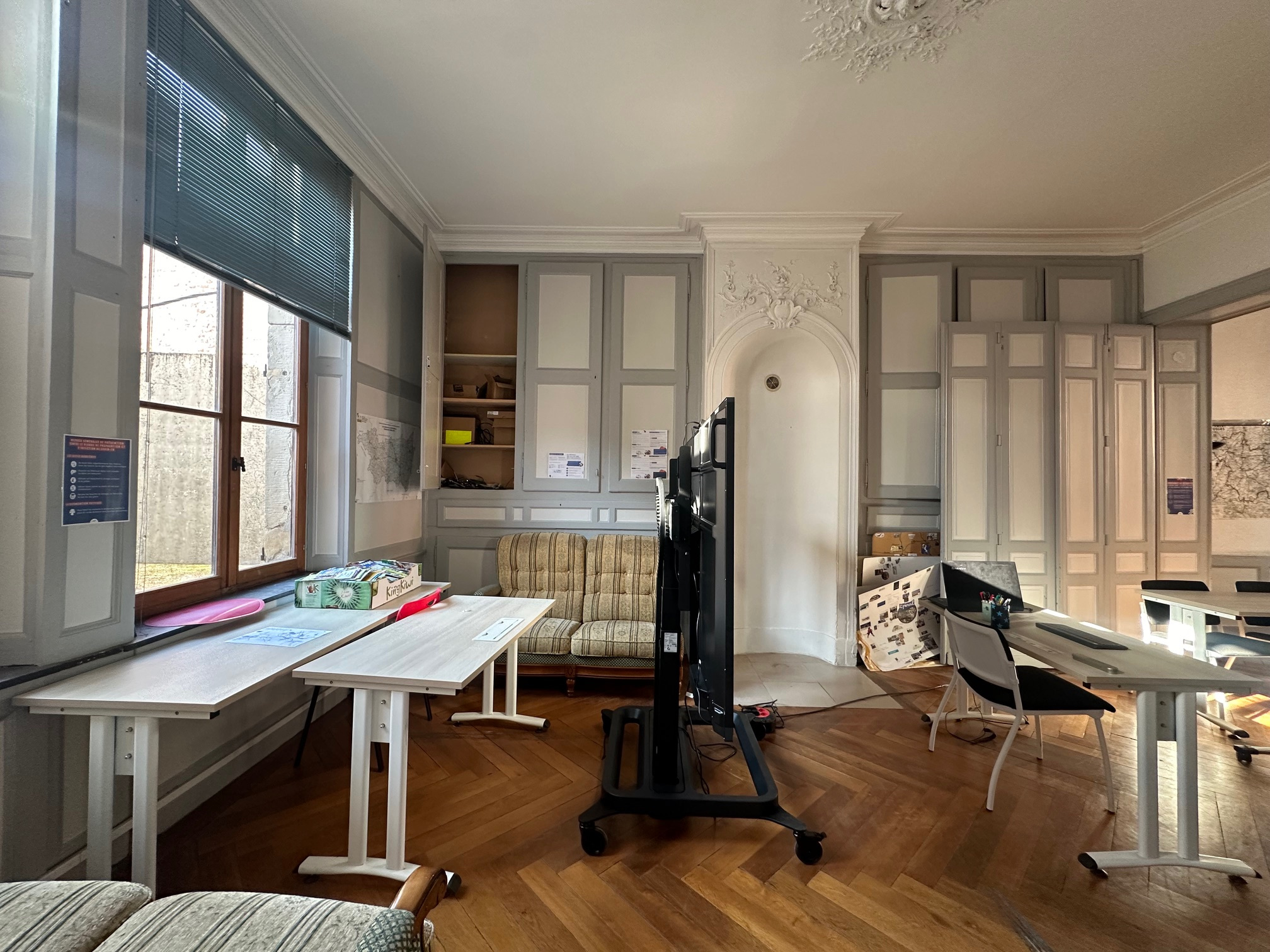 Local commercial (env 62.99 m2 carrez) au rdc (2 pièces dont une avec vitrine sur rue + sanitaires) + grande pièce bureau à l'étage (env 75.86 m2 carrez) avec partie cuisine et sanitaires.