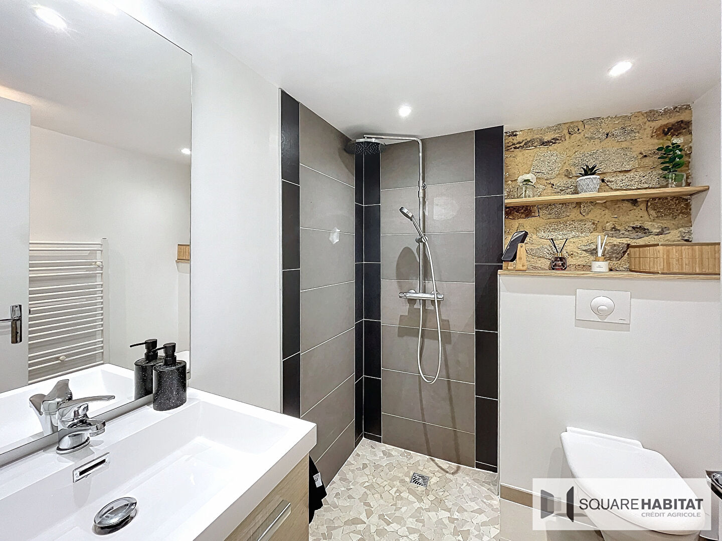Attenant à celle-ci un appartement entièrement rénové comprenant au rez-de-chaussée une pièce de vie avec une cuisine aménagée et équipée, une salle d'eau avec wc, un cellier. A l'étage, deux chambres et un wc.