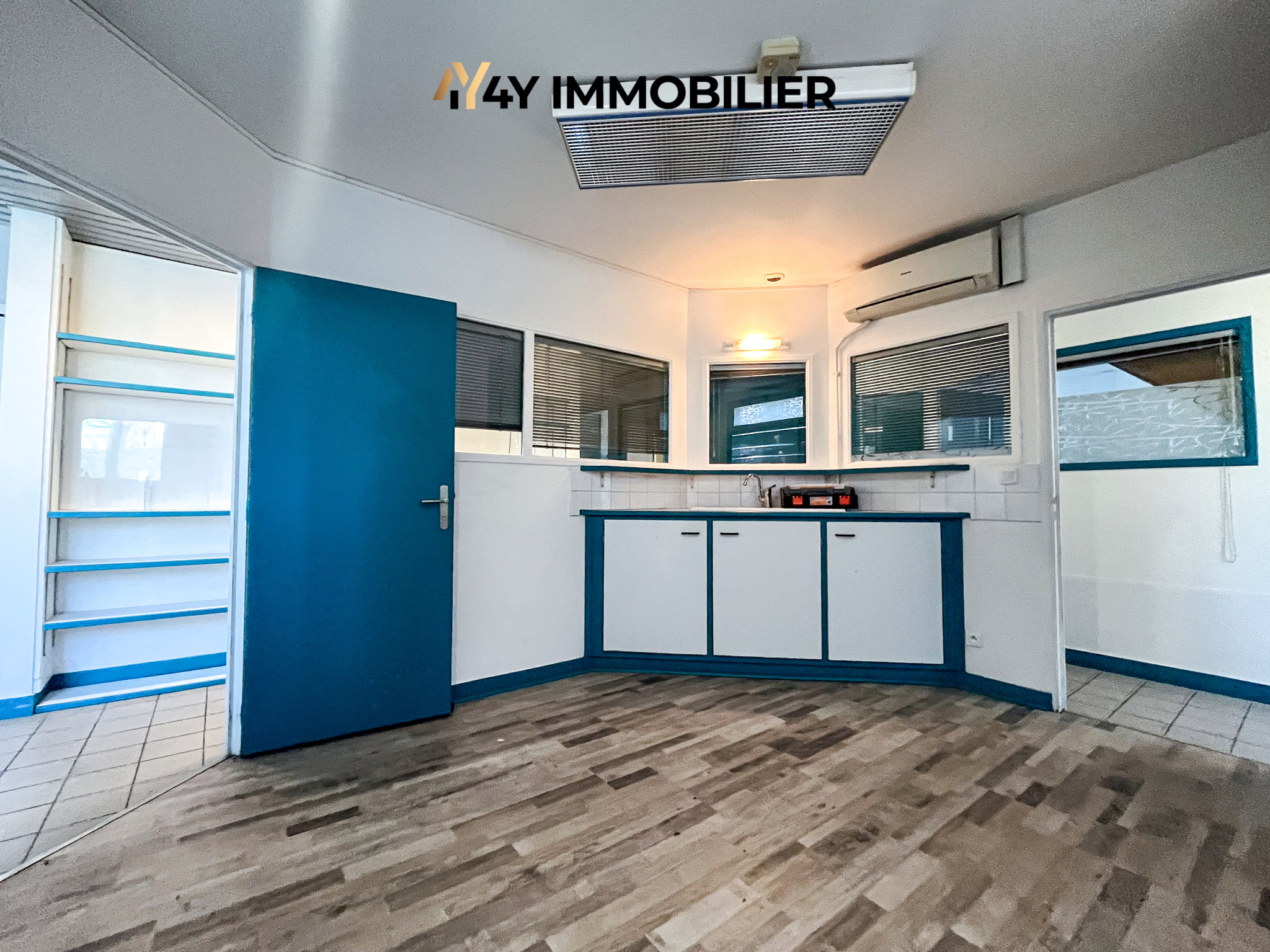 À l'étage, deux bureaux supplémentaires, une kitchenette et une salle d'eau avec sanitaires complètent l'ensemble.