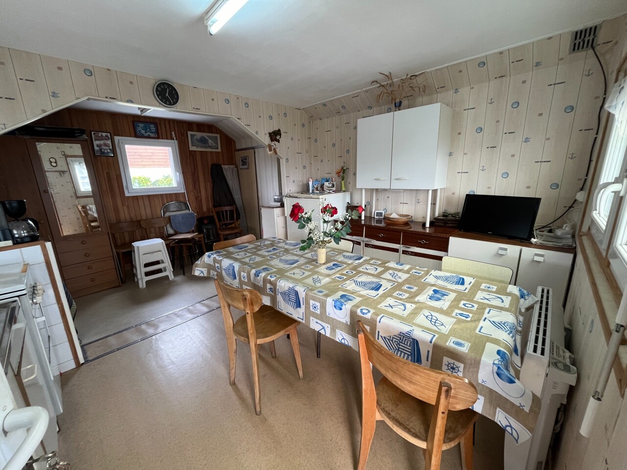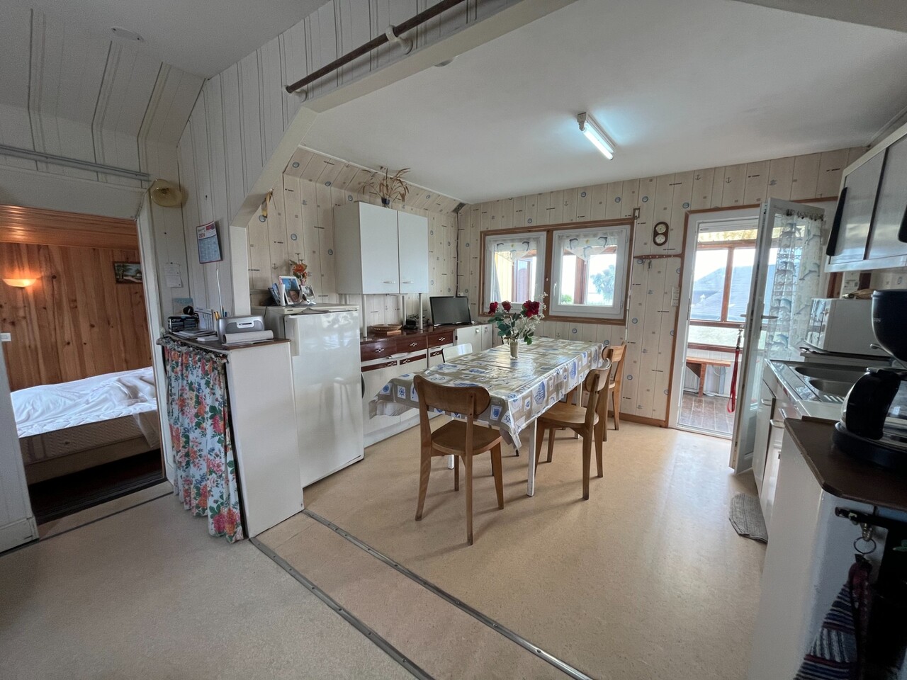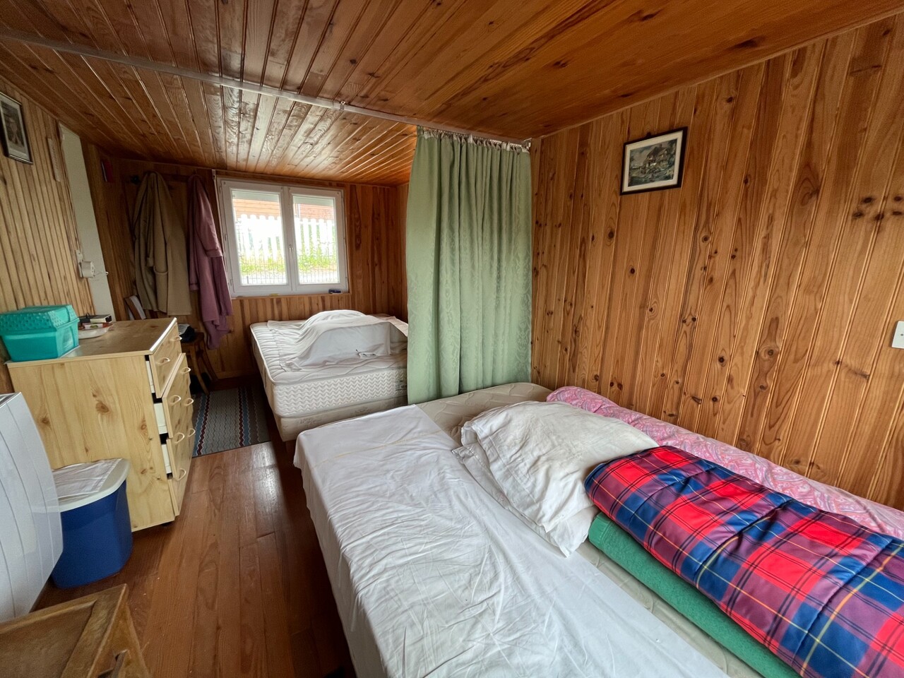 BAISSE DE PRIX POUR CE CHALET comprenant une pièce à vivre avec coin cuisine, une douche; une grande chambre, partie couverte à l’avant ; wc.