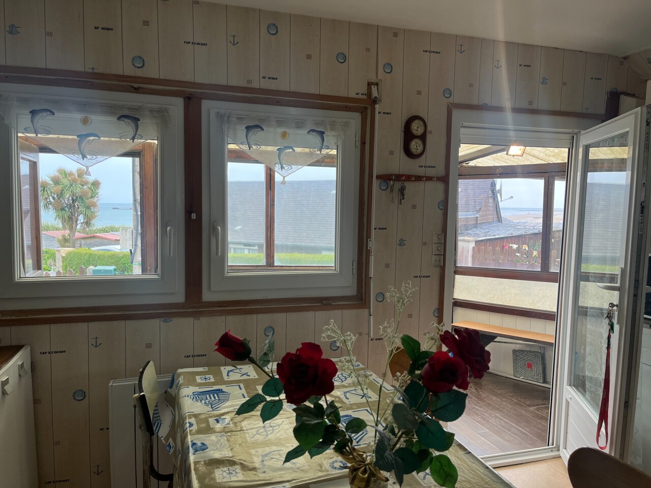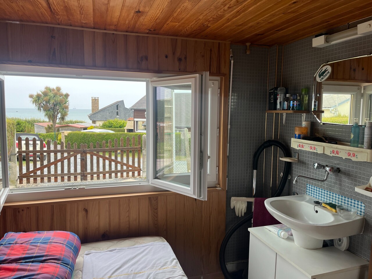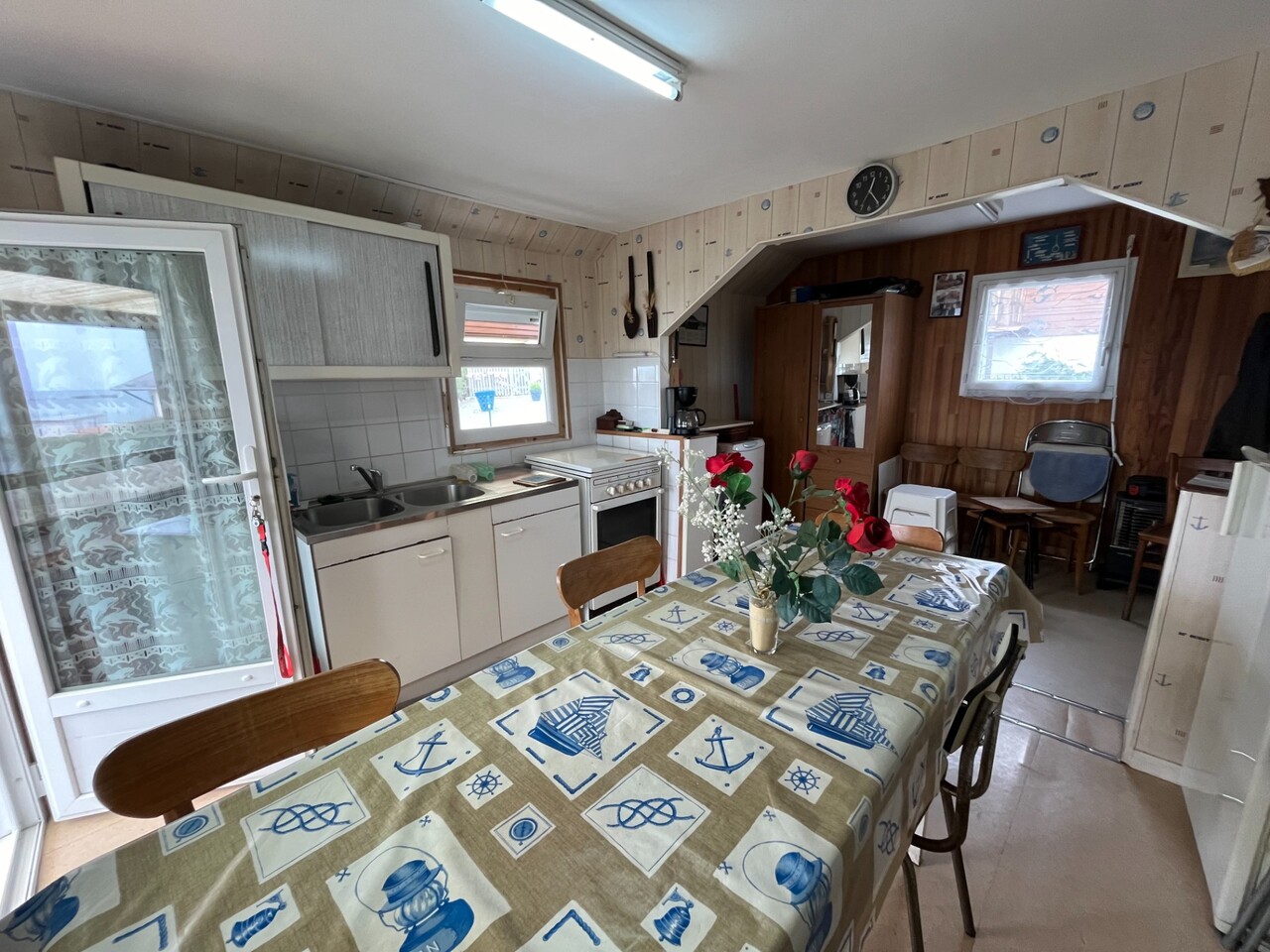 BAISSE DE PRIX POUR CE CHALET comprenant une pièce à vivre avec coin cuisine, une douche; une grande chambre, partie couverte à l’avant ; wc.