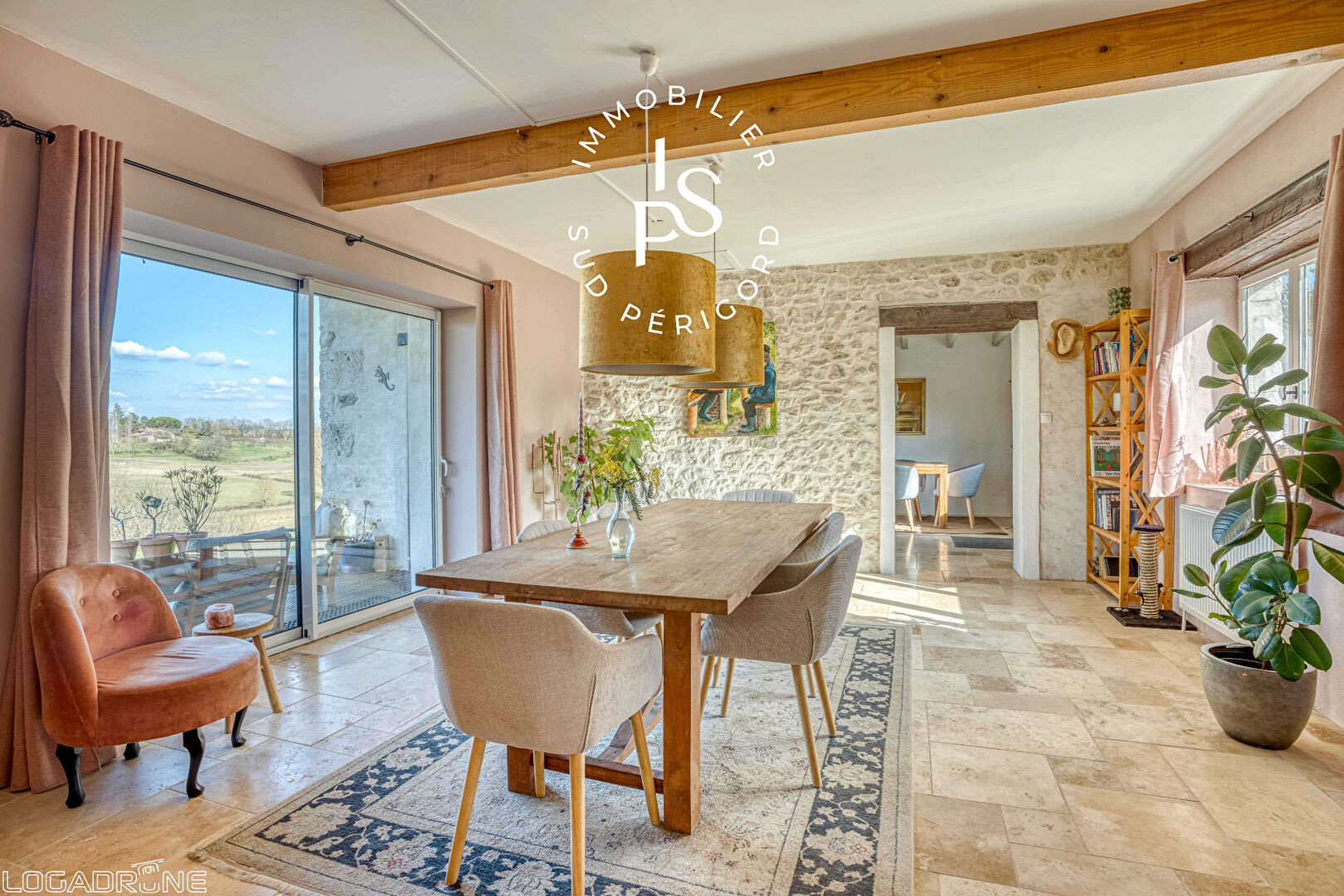 HABITATION : Entièrement rénovée avec goût, cette maison allie confort moderne et charme authentique, avec des sols en travertin et du double vitrage intégral. Elle se compose de cinq chambres, dont trois avec salle de bains privative, d'une grande cuisine équipée avec coin repas, d'une salle à manger séparée et d'un salon lumineux bénéficiant d'une double exposition Nord-Sud. Depuis la salle à manger, des portes coulissantes mènent à un espace salon couvert, idéal pour profiter pleinement des vues imprenables sur la campagne.