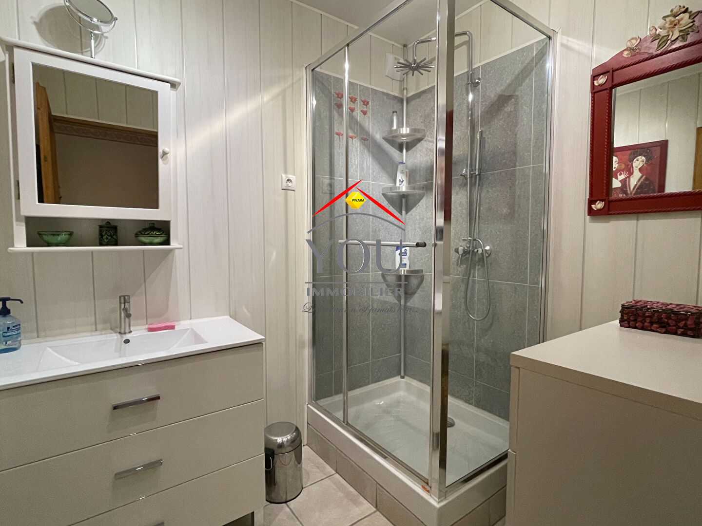 10 MIN VALLANGOUJARD, MAISON INDIVIDUELLE HABITABLE DE PLAIN PIED COMPRENANT AU REZ DE CHAUSSEE: SAS D'ENTREE, ENTREE SUR CUISINE AMENAGEE, SEJOUR DOUBLE AVEC CHEMINEE INSERT, 2 CHAMBRES, SALLE D'EAU, WC, CELLIER.