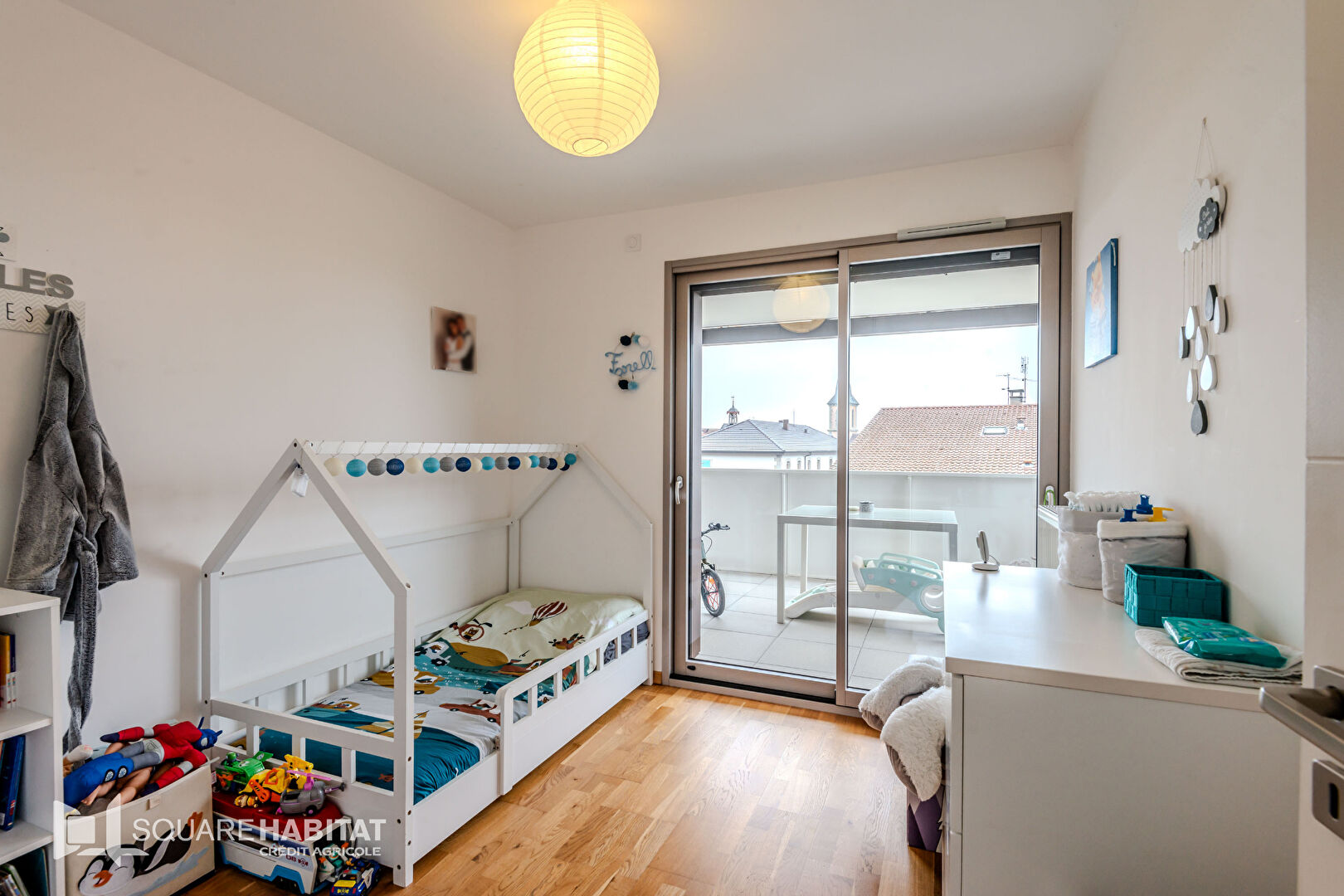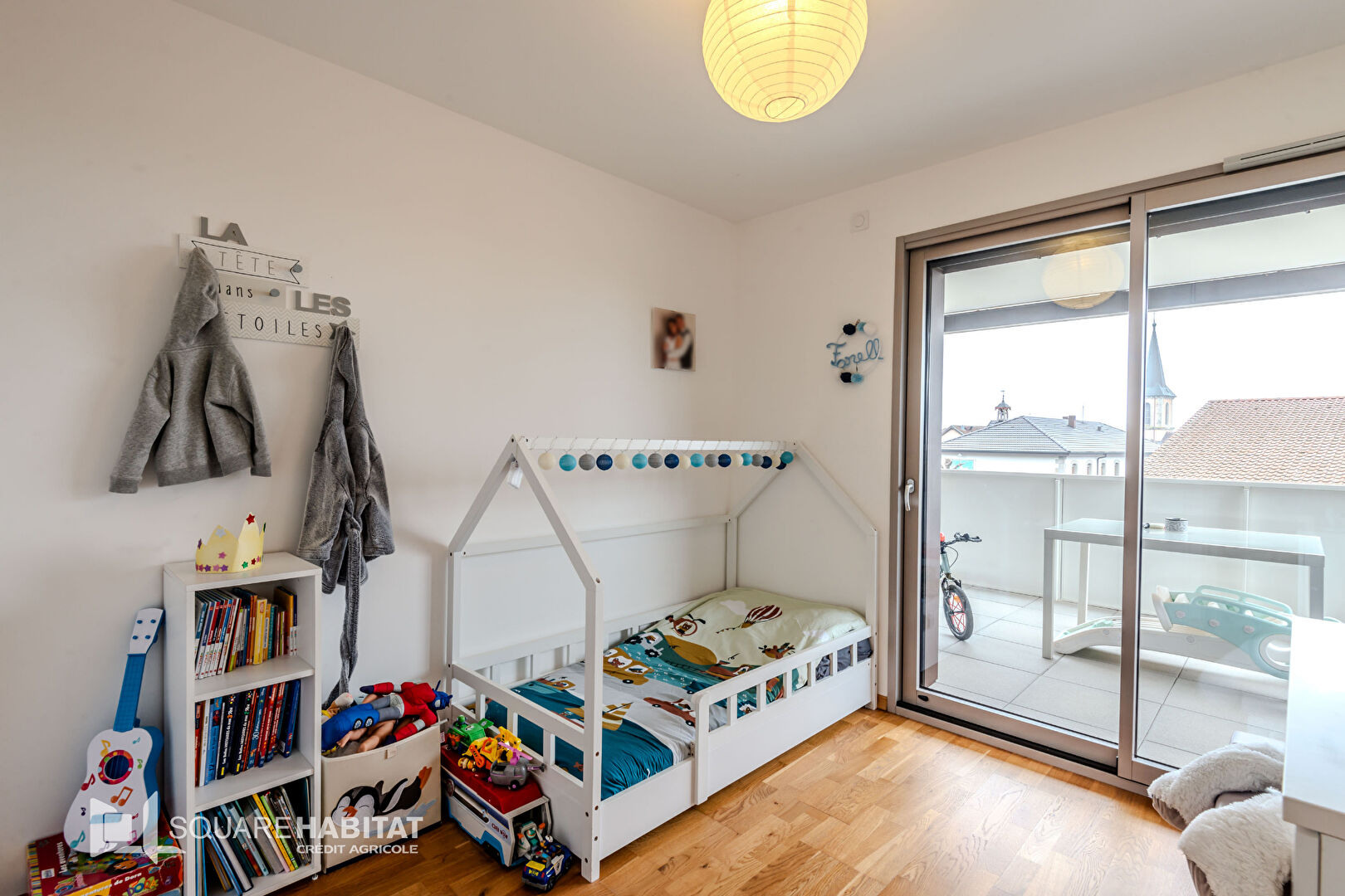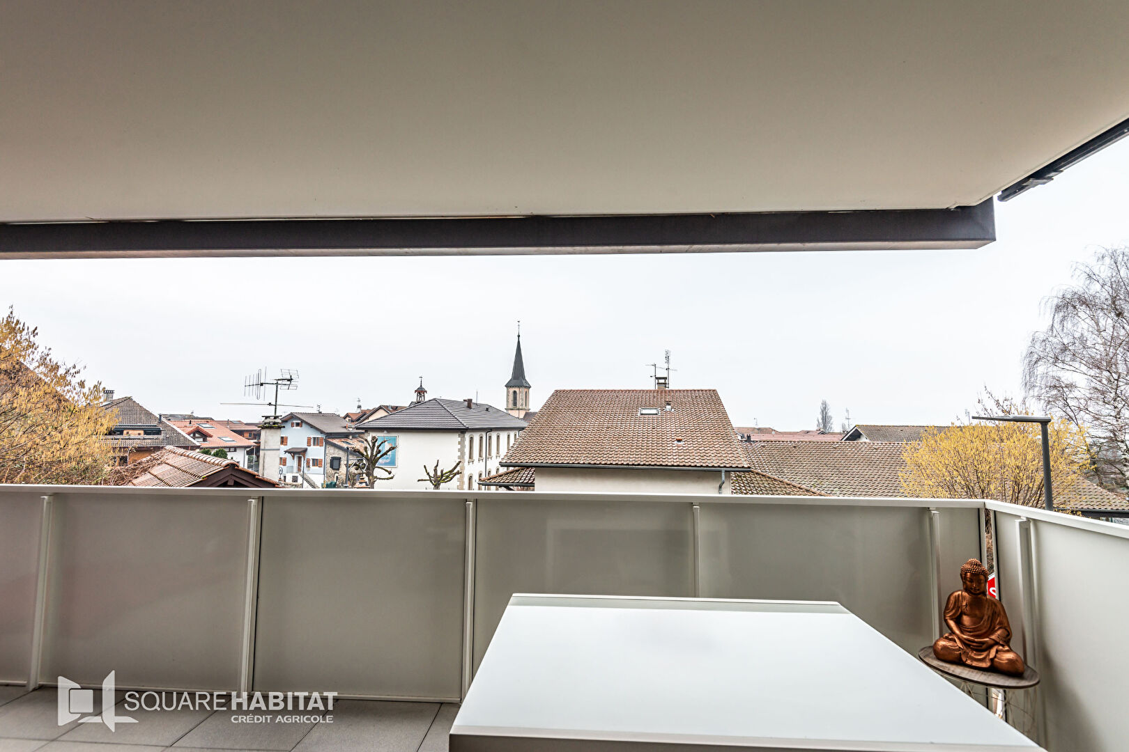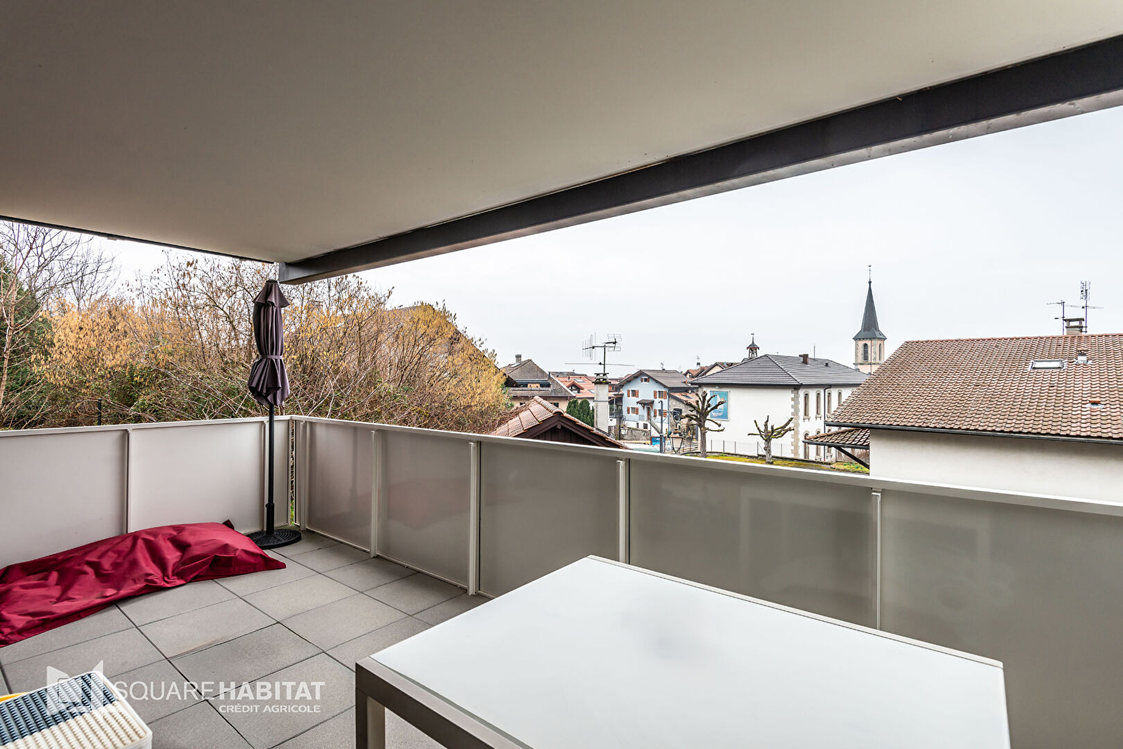 Situé au 1er étage de la résidence, le balcon de 14,62 m², offre une jolie vue dégagée sur le clocher du village, sans vis à vis.