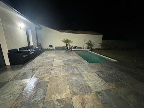 - LG IMMO - Cabinet GARÉCHÉ vous propose une maison entièrement neuve avec pisicne, faite avec goût, comprenant 2 chambres de 9,50 m2, une suite parentale avec dressing, un grand salon de 47 m2 avec une cuisine toute équipée très morderne et sa cave, hotte intégrée, grand plan de travail et une magnifique salle de bains avec double vasque. La piscine de cette maison est chauffée, idéale pour poser ses valises. Le terrain est clos de murs avec un garage fermé, parking intérieur et un portail électrique. Pour une visite, contactez Mme PRUDHON Florence 06 18 09 24 17.