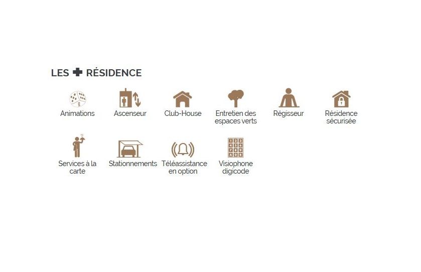 Cette résidence, accessible aux personnes à mobilité réduite PMR, est principalement occupée par des personnes âgées (séniors), elle propose des animations, un club House, un régisseur, un service à la carte.