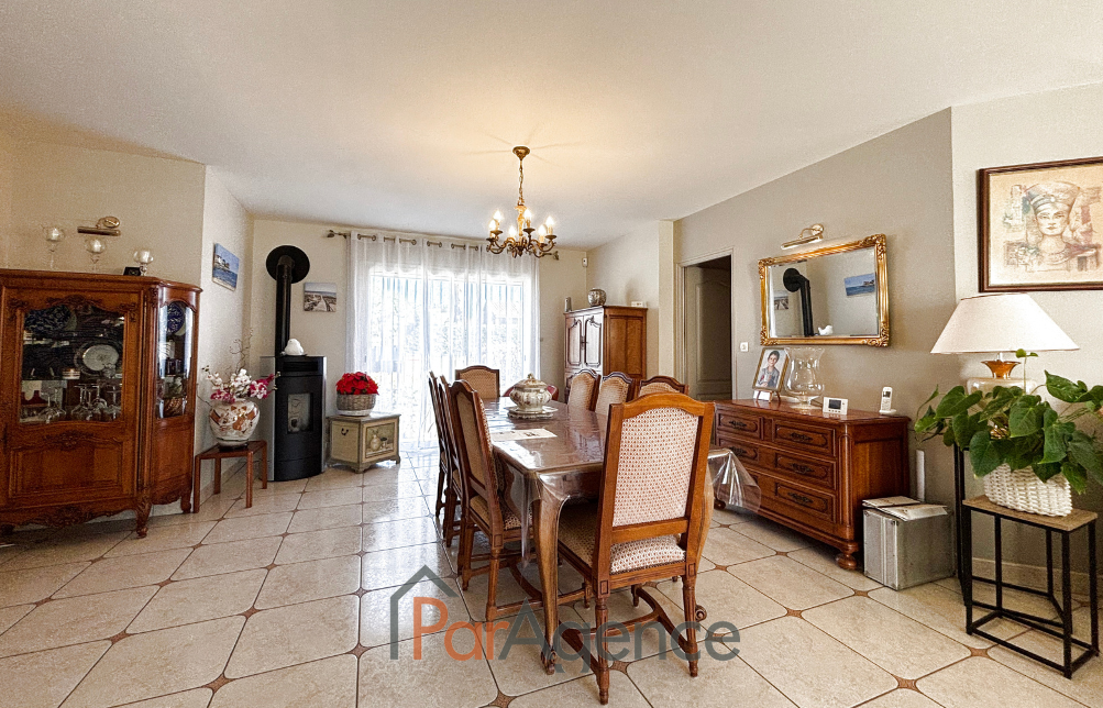 SAINT-PALAIS-SUR-MER VUE SUR LAC, à 900 m du marché avec accés direct par le sentier du lac et 1200 m de la plage du Bureau, sur un terrain clos de 713 m2 MAISON de PLAIN-PIED de 4 pièces principales comprenant pour environ 143 m2 habitables: entrée, séjour-salon de 53 m2 avec cheminée insert et poêle à granules ouvrant sur terrasse couverte et jardin, attenante une cuisine équipée avec salle à manger de 19,34 m2 ouvrant sur jardin, dégagement desservant une suite parentale avec salle de bains baignoire et douche, wc. Deux chambres avec placard dont une ouvrant directement sur jardin, salle d'eau, wc. Lingerie. Chauffage au sol par chaudière gaz. Sous-sol complet de 150 m2 avec garage double, lingerie, atelier et cave à vin. QUARTIER CALME ET RESIDENTIEL. Les informations sur les risques auxquels ce bien est exposé sont disponibles sur le site Géorisques : www.georisques.gouv.fr. Honoraires agence à la charge du vendeur. https://www.par-agence.fr/nos-honoraires.