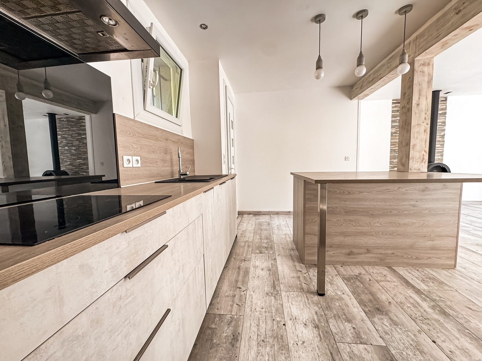 En hiver, le poêle à bois instaure une atmosphère chaleureuse et confortable. La cuisine ouverte, récente et entièrement équipée (four, micro-ondes, réfrigérateur intégré, lave-vaisselle intégré), a été pensée pour un usage à l'année comme pour des séjours prolongés. L'appartement comprend une chambre avec rangements, un cellier très pratique, une salle d'eau et des WC séparés ; un abri permet de stocker vélos, planches et matériel de plage.