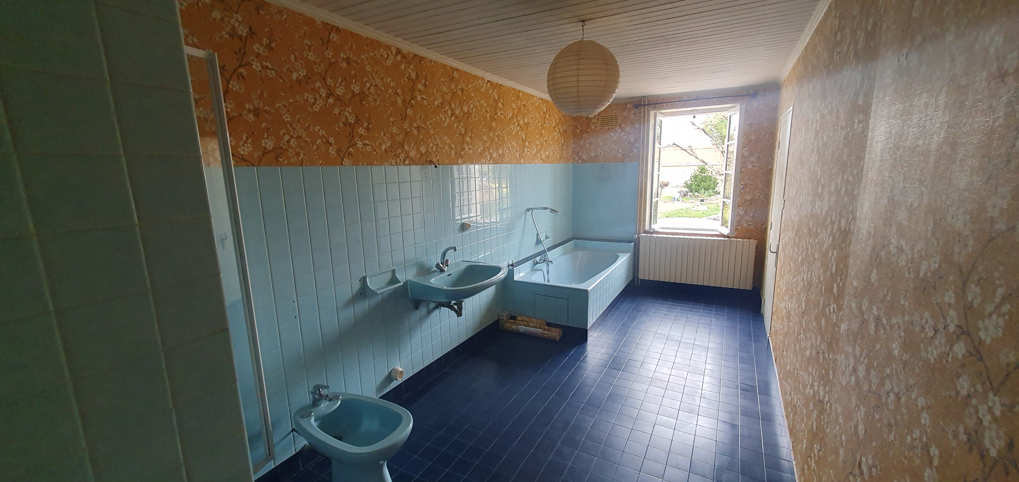 Cette propriété ( habitable de suite ) dispose d'une grande cuisine , un grand séjour/salon avec cheminée de 53 m2, de 3 spacieuses chambres , d'une salle de bains + douche et de deux wc.
