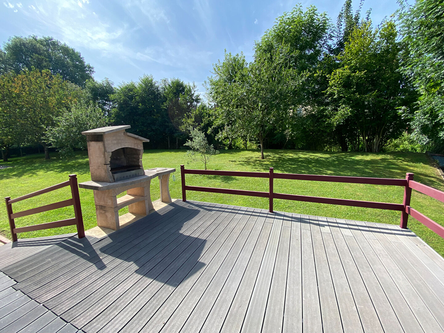 Maison entièrement rénovée 221m² habitables comprenant au rez-de-chaussée: entrée avec placard, séjour / salon 44 m² l'ensemble avec poêle à bois, cuisine aménagée et équipée ouverte sur véranda, chambre 13m², salle d'eau, wc, buanderie et garage avec porte électrique. A l'étage : palier distribuant trois chambres dont une avec dressing, salle d'eau, wc. 2ème étage : deux chambres, salle de jeux et un wc. Chauffage par pompe à chaleur, double vitrage bois. Cave sous la maison. Il y a une 2ème maison d'environ 70 m² à restaurer. Très jolie jardin 1 885 m² bordé par une rivière.