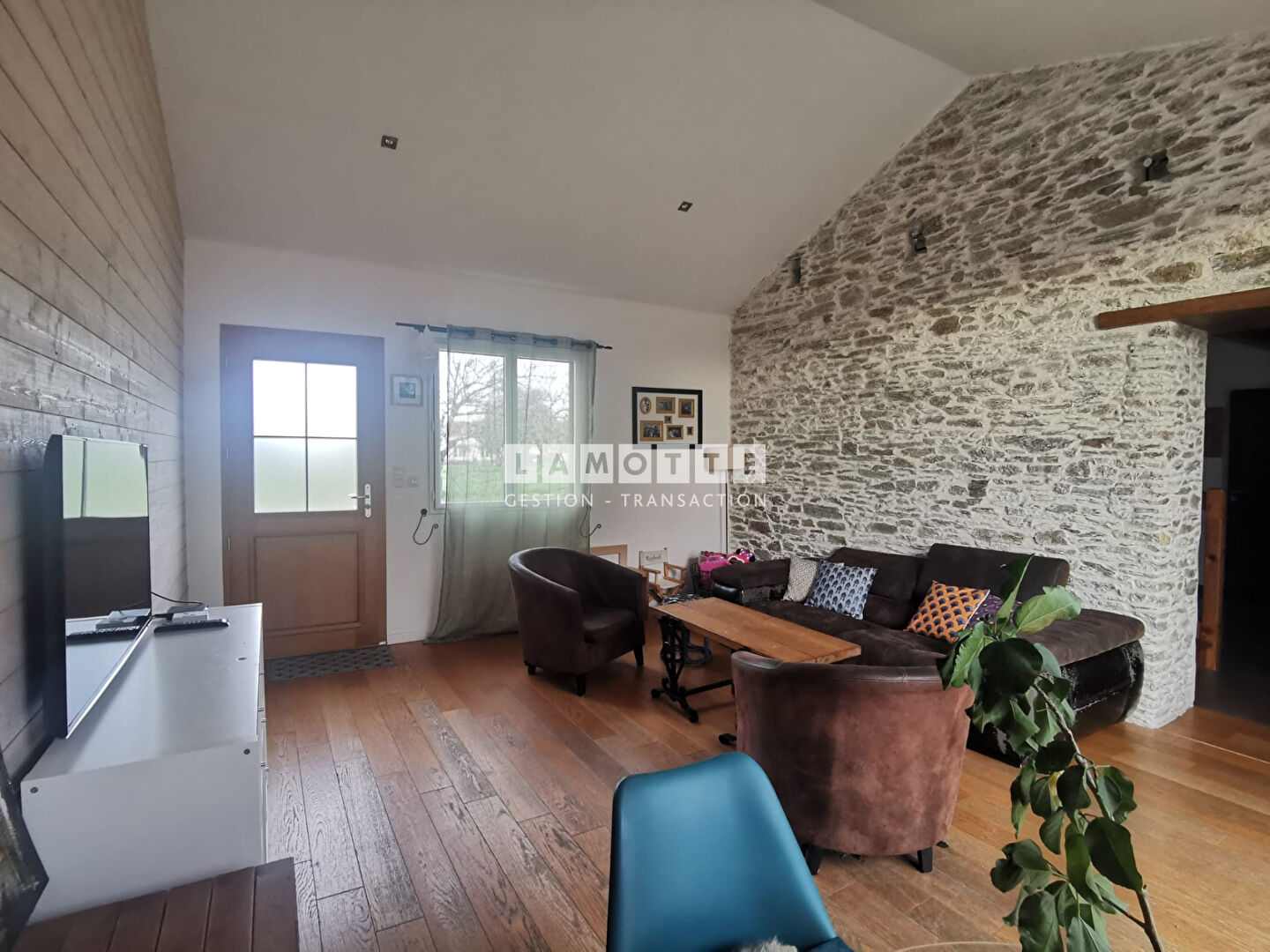 - d'un espace de vie CHALEUREUX grâce à un subtil mélange entre pierres et parquet