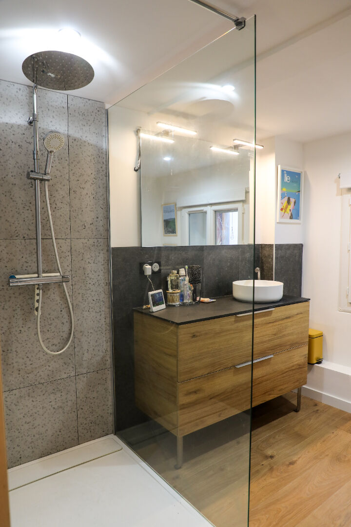 Le bien se compose de deux chambres (ou d'une chambre et d'un bureau selon vos besoins), d'un dressing, d'une cuisine aménagée et équipée, d'une salle d'eau avec WC, ainsi que d'une seconde salle d'eau en rez-de-chaussée pouvant également faire office de buanderie.