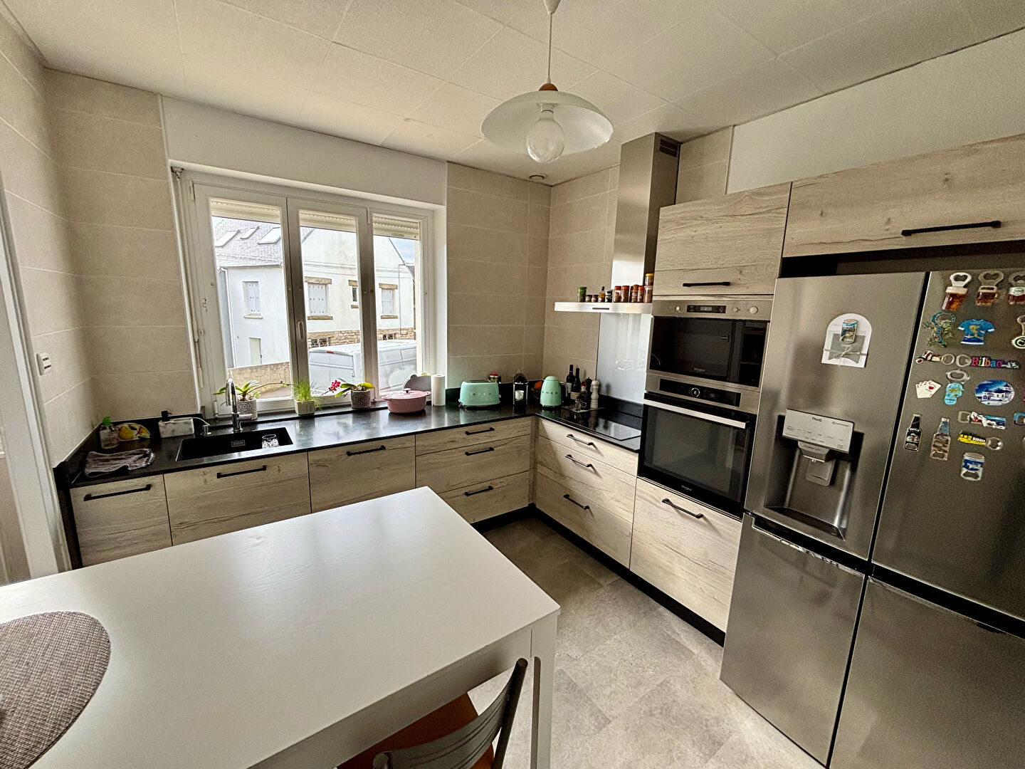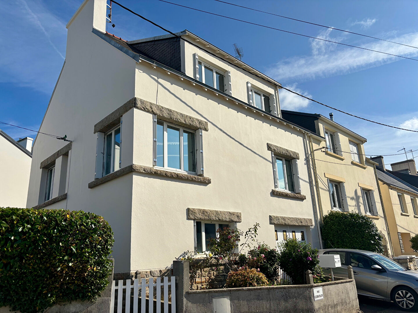 Quimper Kerfeunteun, secteur prisé ayant toutes commodités pour cette jolie maison rénovée, offrant un hall, séjour salon sur parquet, cuisine équipée, bureau, 3/4 chambres selon les besoins, sde, 2 wc. Garage et buanderie. Jardinet sur 195 m² environ.