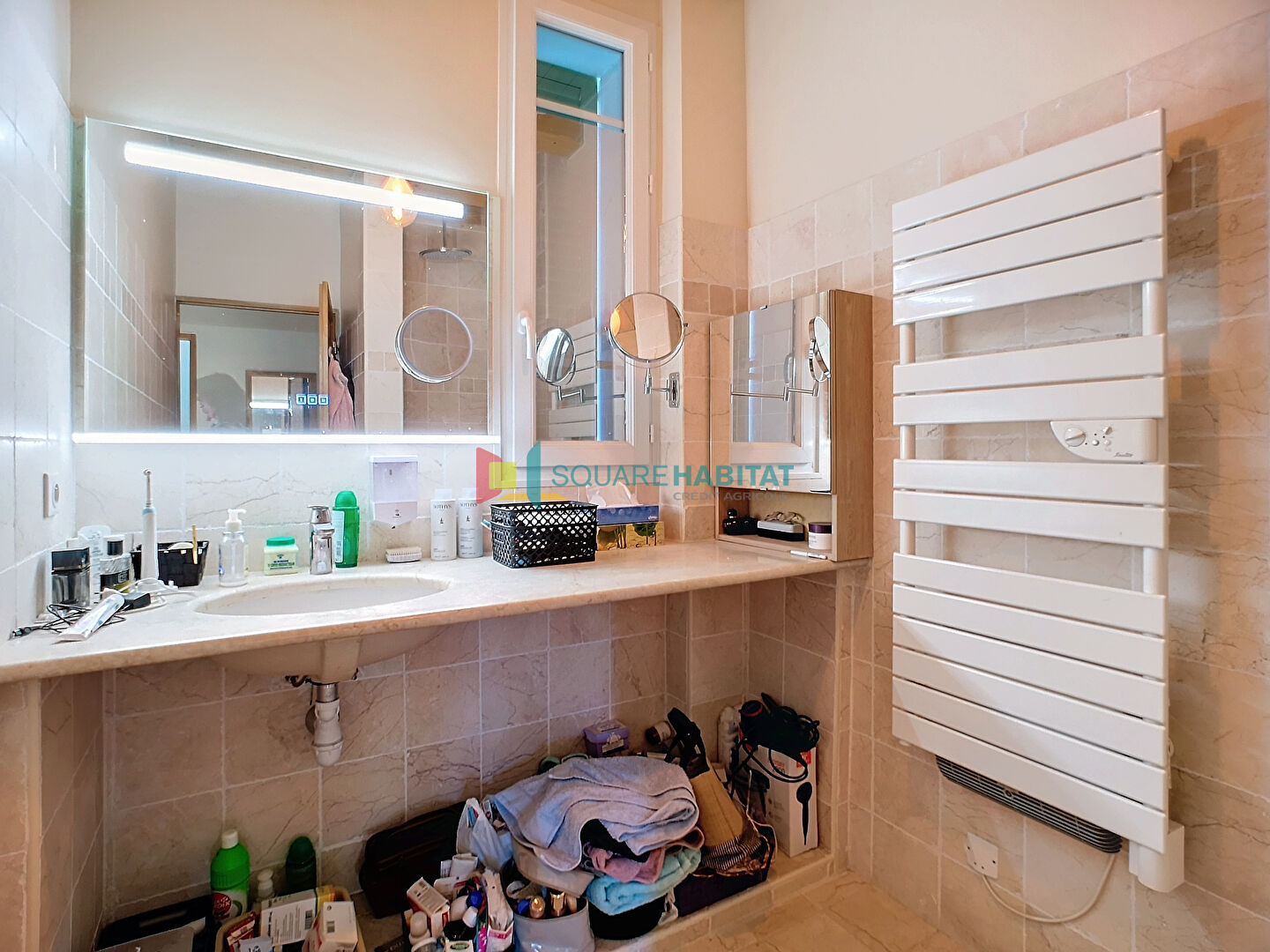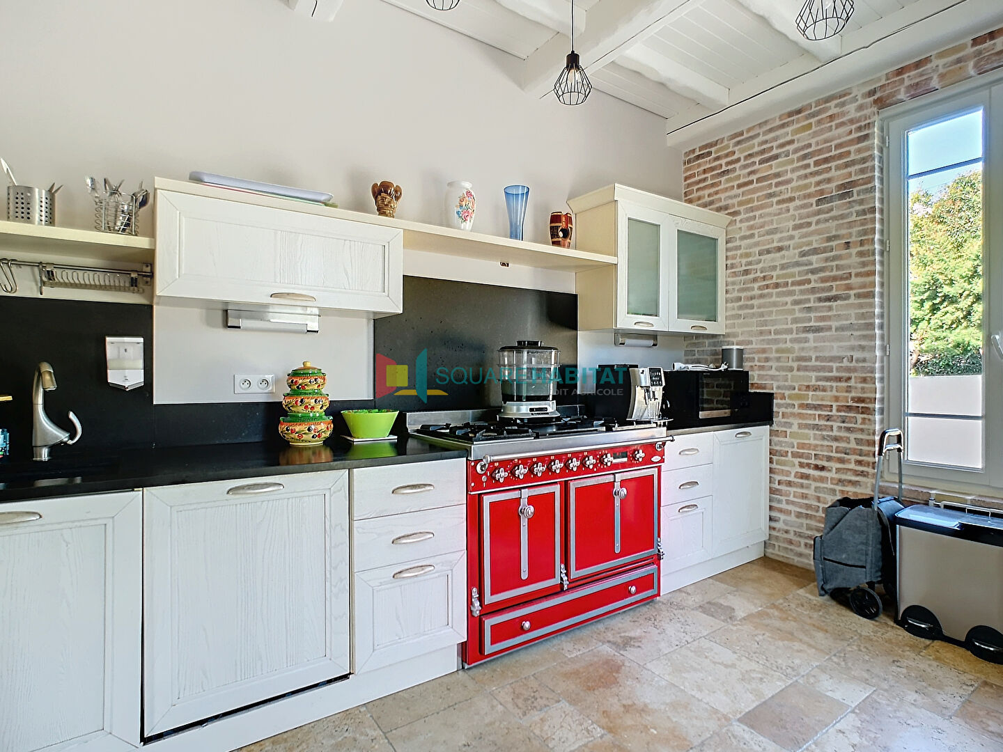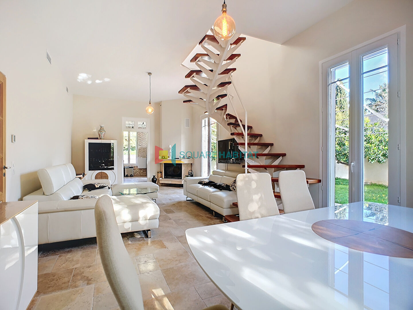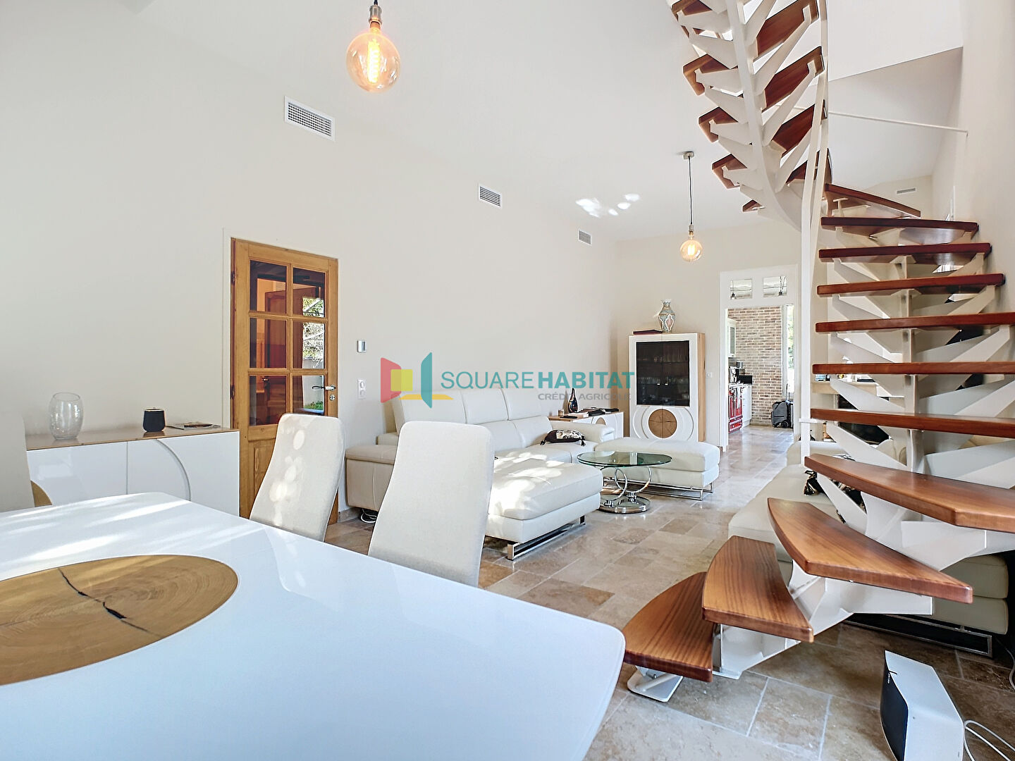 Elle se compose d'un double séjour lumineux, d'une belle cuisine équipée, de deux chambres de plain pieds avec une salle d'eau; à l'étage deux chambres avec une salle de bains .