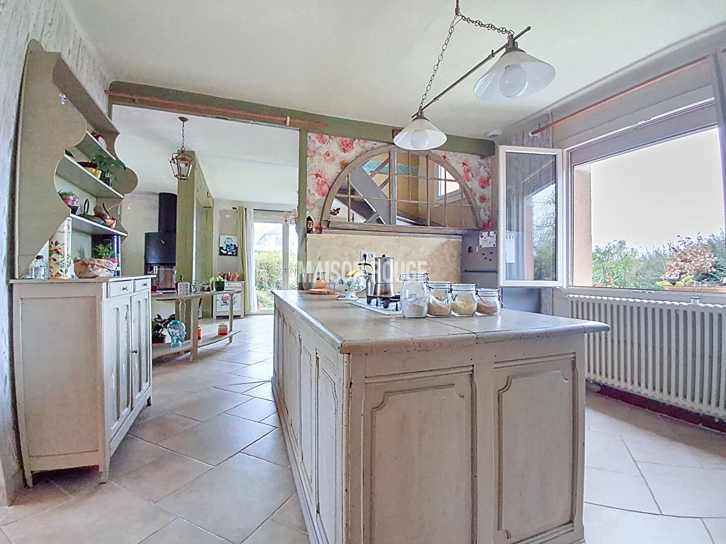 Dès l'entrée, vous serez séduits par une belle cuisine aménagée ouverte sur une salle à manger et un salon lumineux, agrémenté d'un poêle à bois, parfait pour des moments conviviaux en famille ou entre amis.