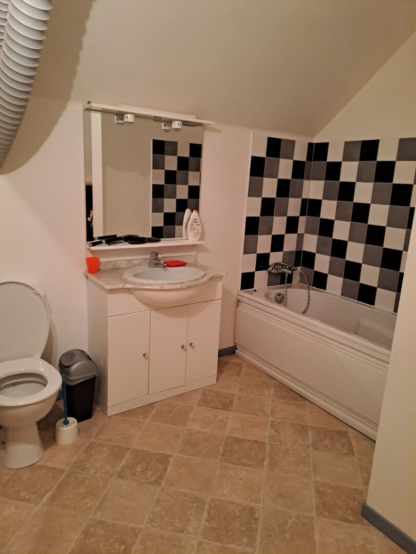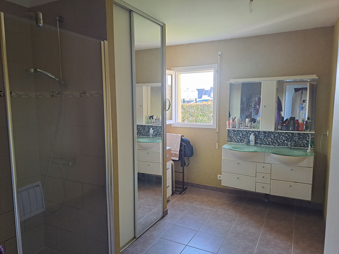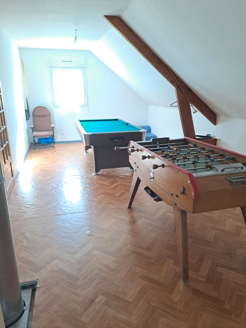 A l'étage, le palier dessert : 2 bureaux pouvant être réunis pour faire une grande chambre, une grande salle de jeux, une chambre en enfilade, une salle de bain avec WC disposant d'une attente prévue pour rajouter une douche si besoin.