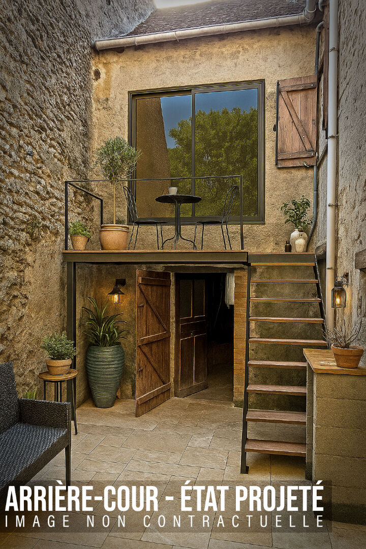 Autre bonus : une cour intérieure laissant la possibilité de créer une terrasse intime sur pilotis, idéale pour les repas ou les apéritifs à l'abri de la chaleur ! (déclaration préalable obenue pour la baie vitrée)