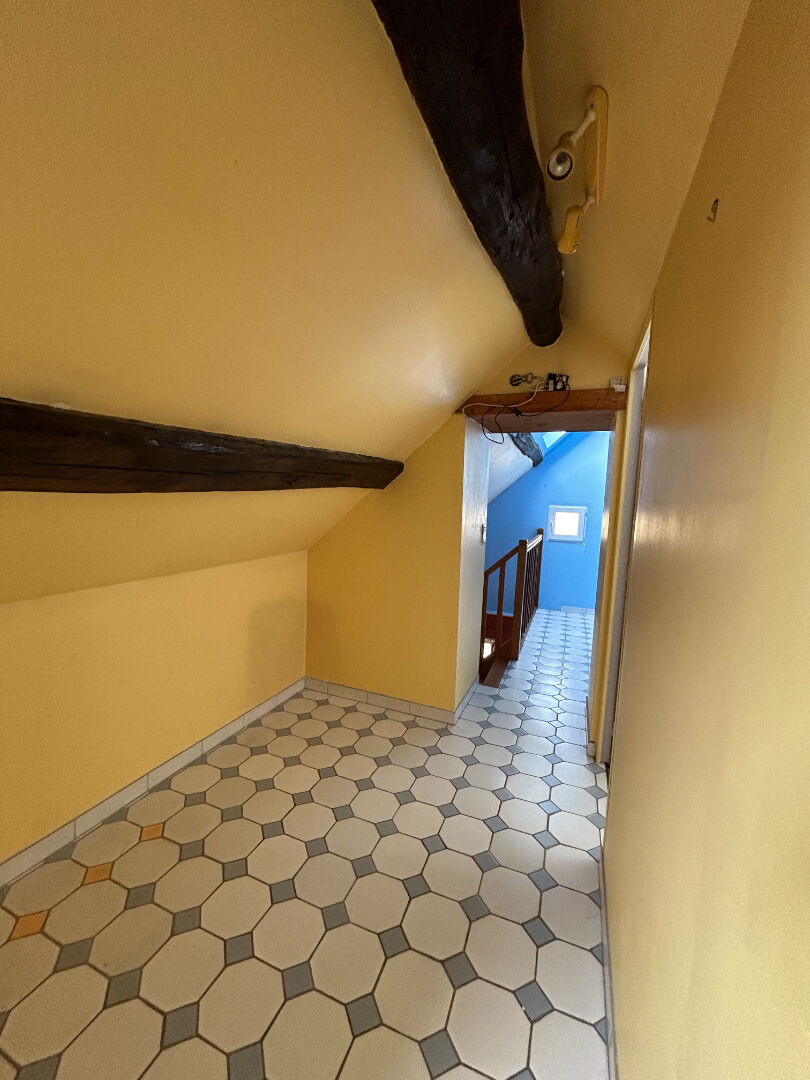 Maison comprenant au rez-de-chaussée entrée avec placard, WC sous l'escalier, séjour de 23 m² avec cheminée donnant sur une cour commune, cuisine ouverte. Au 1er étage palier, salle d'eau WC, une grande chambre de 23 m². Dans les combles un grand palier pouvant servir de bureau, deux chambres avec velux, salle d'eau avec WC. Venant compléter le lot une grange à rénover et un terrain de 1245 m².