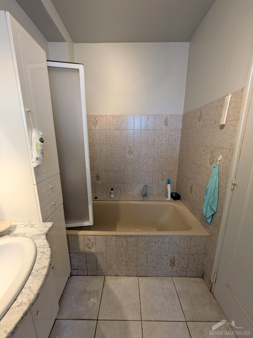 - 1er étage : cuisine aménagée et entièrement équipée, séjour lumineux exposé Sud, salle de bains avec baignoire et douche, WC séparé avec lave-mains, placard/buanderie avec branchement lave-linge.