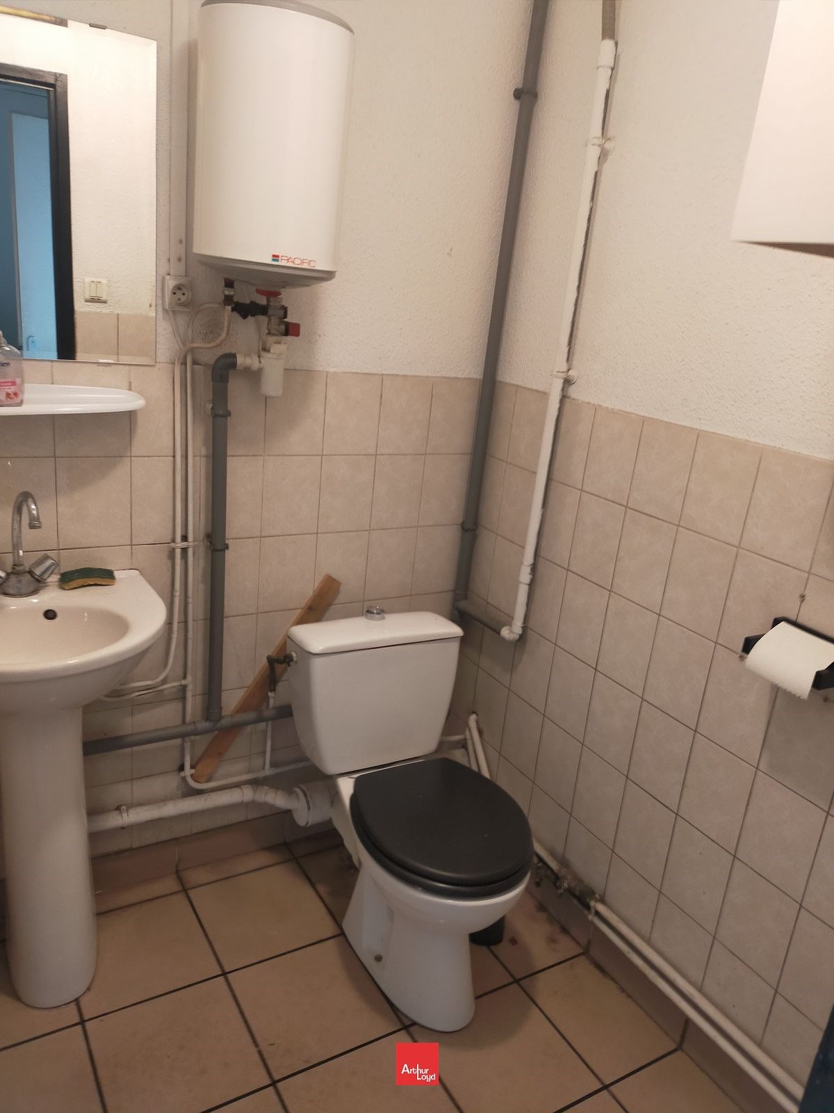 Fermeture par rideau métallique, carrelage au sol, climatisation réversible.