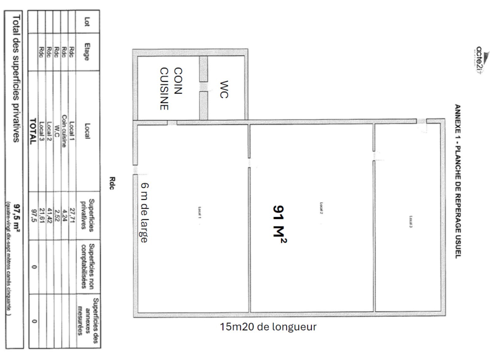 Le local est aménagé avec un espace d'accueil , un espace atelier et une réserve, mais les espaces peuvent être réunis pour faire une seule et unique surface de 91 m².