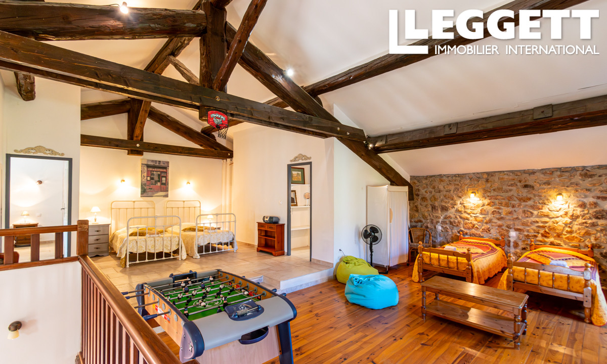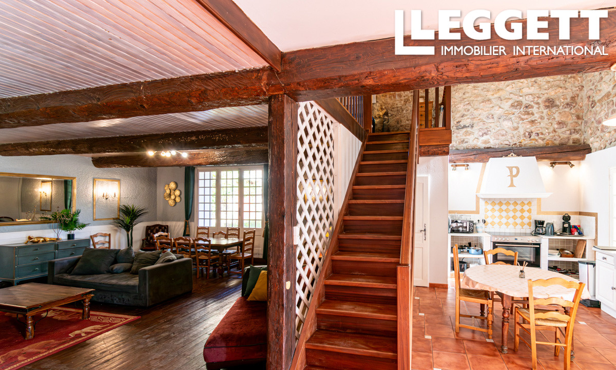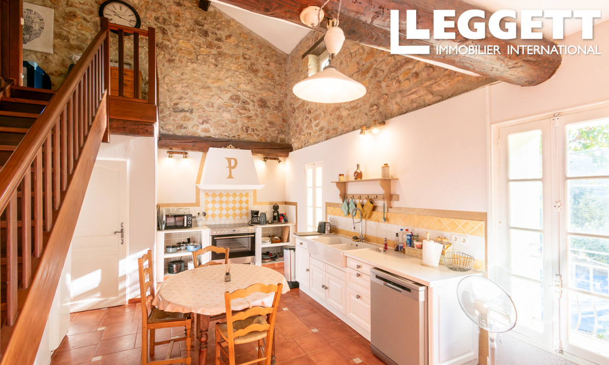 A35098PIC11 - Nichée dans un hameau paisible entre Fontjoncouse et l'abbaye de Fontfroide, cette ancienne ferme en pierre de 1890 séduit par son charme et son cadre naturel exceptionnel. Un jardin méditerranéen avec piscine mène à une chambre indépendante avec salle de bain. Un escalier extérieur en pierre conduit à la maison principale : vaste pièce de vie avec toit cathédrale, poutres apparentes et cheminée, ainsi qu'une chambre et une salle de bain sur ce même niveau. À l'étage, une mezzanine lumineuse est actuellement aménagée avec deux paires de lits simples et un baby-foot, tout en laissant suffisamment d'espace pour jouer ou faire du sport. Elle dessert deux chambres et une grande salle de bain. Une garage complète ce bien de caractère. Idéale comme maison familiale ou résidence secondaire, cette propriété offre calme et authenticité tout en étant à 4 min de Saint-André-de-Roquelongue et à proximité de Narbonne, Carcassonne, Béziers et des plages. Excellent potentiel locatif saisonnier.