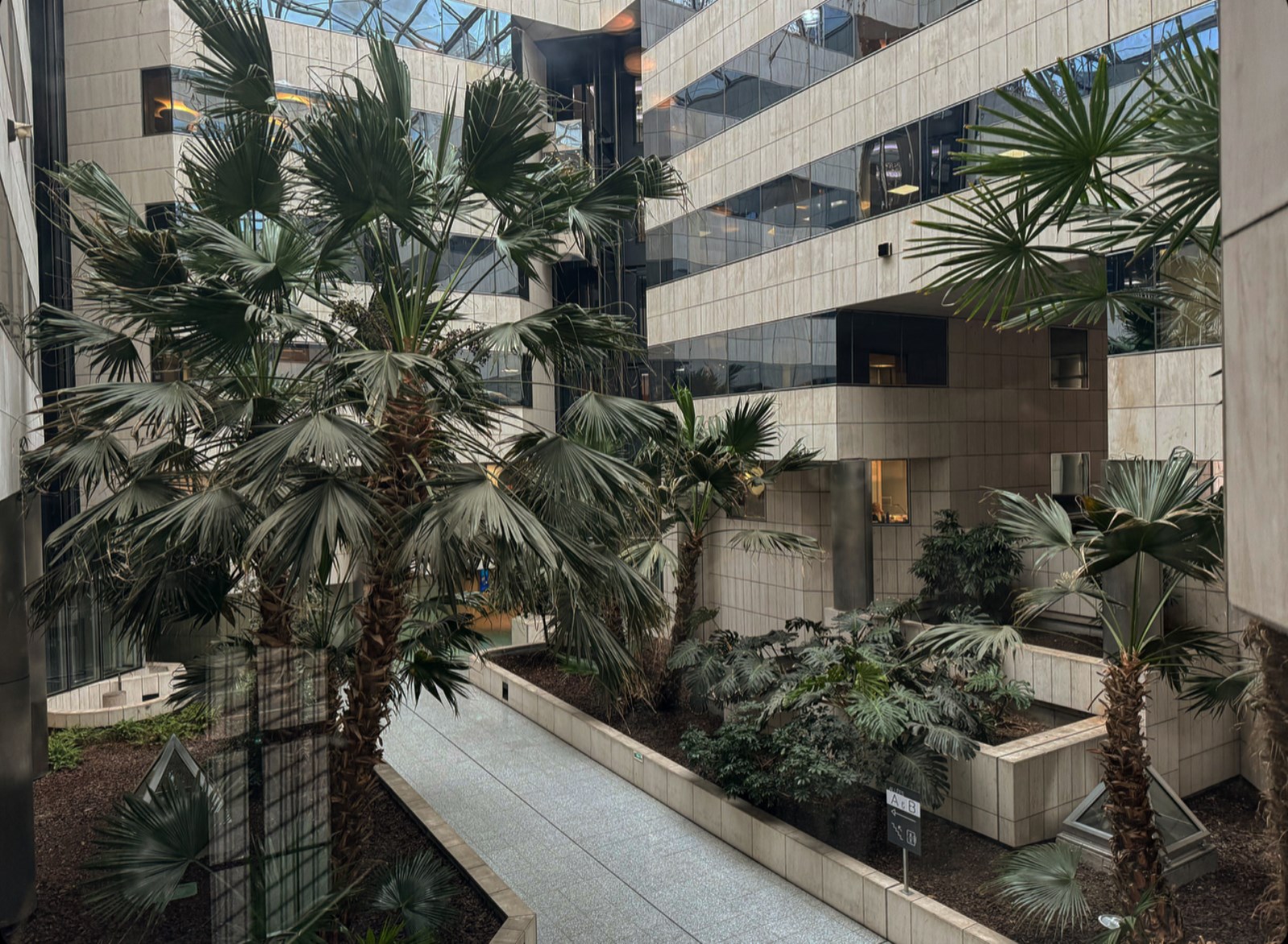 Un atrium est aménagé en jardin d'hiver, avec des ascenseurs panoramiques.