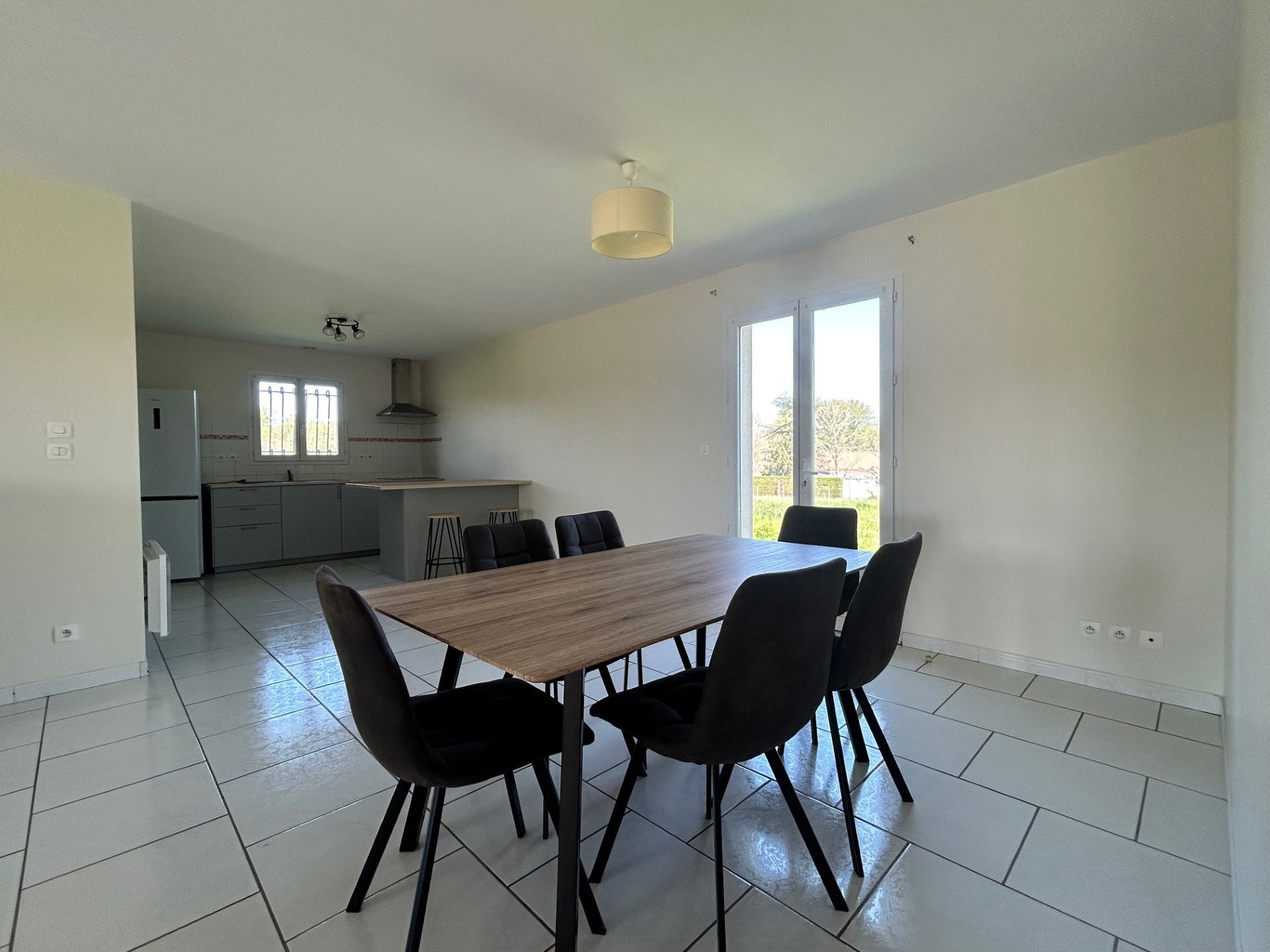 Proche BAIGNES (16) - Toutes les commodités à 3mn pour cette maison individuelle d'environ 85 m2 habitables construite en 2007. Bien exposée et lumineuse, elle comprend une grande pièce de vie avec cuisine équipée, cellier, trois chambres, salle d'eau, wc. Poêle à granulés en complément du chauffage électrique. Garage attenant. Jardin clos d'environ 1096 m2. Secteur calme, avec vue dégagée sur la campagne.