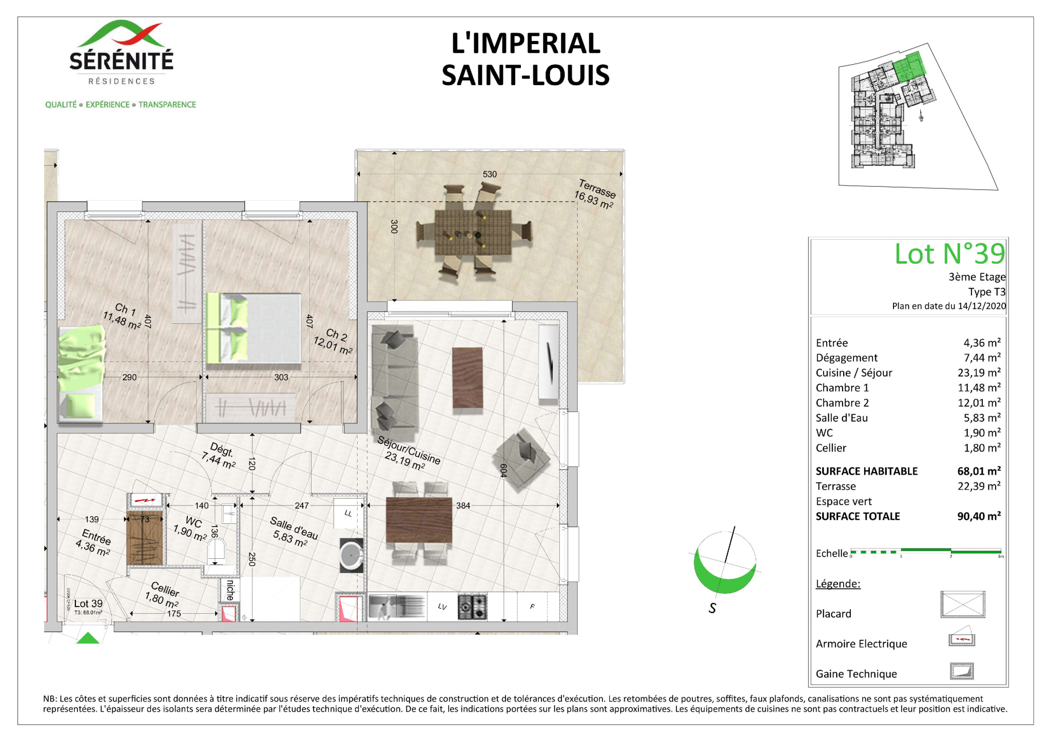! ! ! SOUS COMPROMIS ! ! ! Sur la commune de Saint-Louis, découvrez cet appartement de type F3 de 68m2 au troisième étage d'une résidence de 2025 collée à la frontière suisse. Il est composé d'une entrée, d'un cellier, d'un séjour ouvert sur l'espace cuisine de 23.19m2 et accès à la terrasse de 17m2.