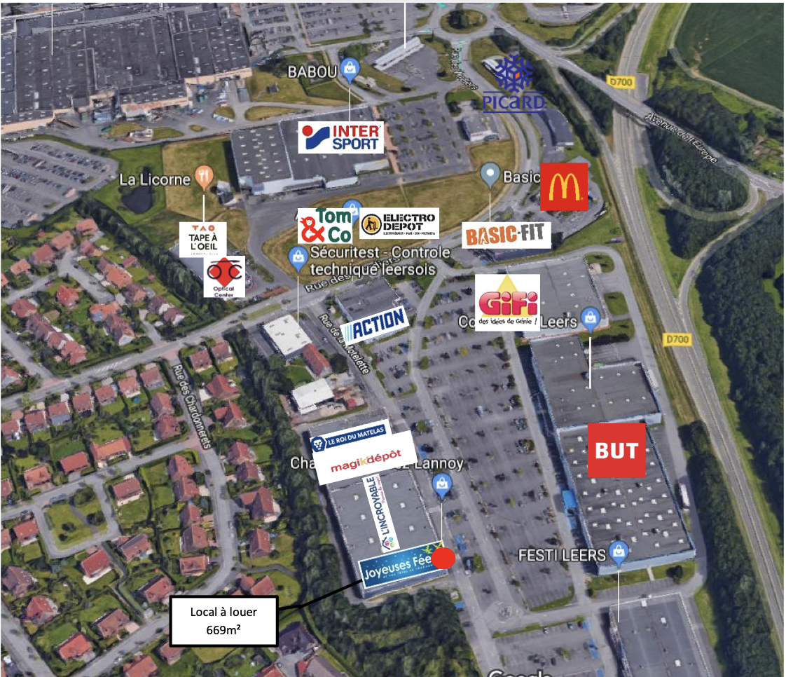 Ce local est situé au sein d'une importante zone commerciale qui comprend les enseignes suivantes : AUCHAN, MC DONALDS, BASIC FIT, INTERSPORT, ACTION, BRICOMARCHE, GIFI, KIABI, INCROYABLE, PICARD, CHAUSSEA, BUT...