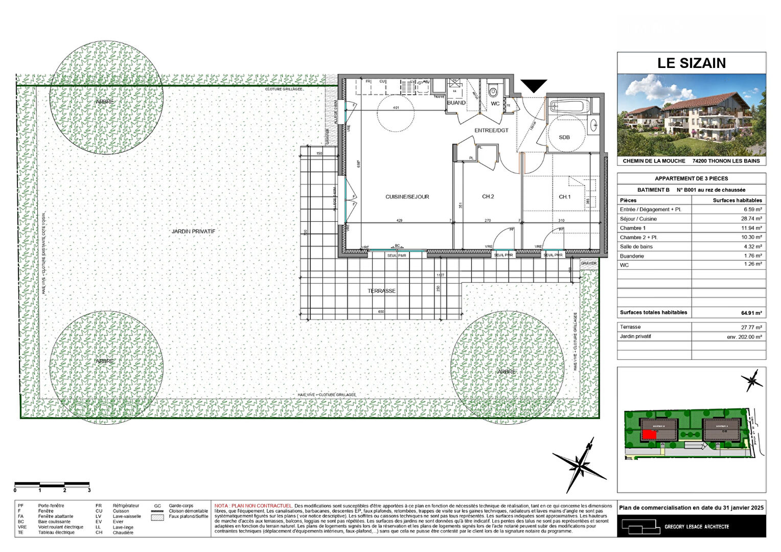 Dans un quartier calme de Thonon-les-Bains, au sein d'une nouvelle résidence composée de 2 petits bâtiments, sans logements sociaux, implantés sur un terrain de 5 300m².