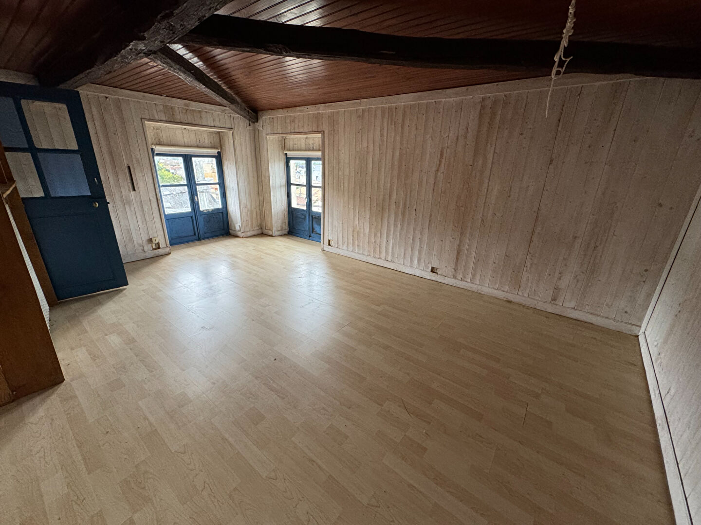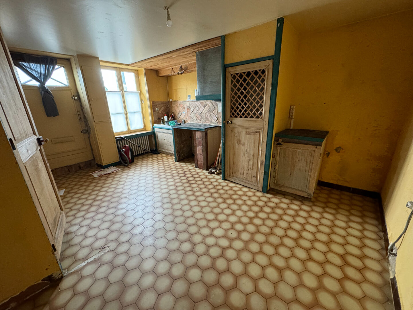 Maison à rénover d'environ 90m² sur plusieurs niveaux, comprenant cuisine-salle à manger, salon, 3 chambres, salle d'eau.