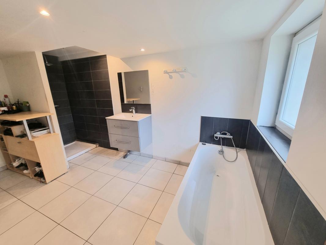 Le rez-de-chaussée dispose d'un WC indépendant , d'une salle d'eau avec douche et meuble vasque , ainsi que d'une salle de bain complète comprenant une baignoire, une douche et un meuble vasque .