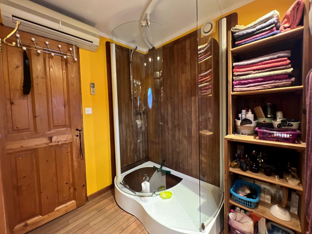 Le bien se compose d'un hall d'entrée spacieux, faisant office de garage et un atelier, suivi d'un escalier menant à la pièce de vie principale, ouverte sur une cuisine aménagée et entièrement équipée. Deux chambres avec dressing viennent compléter l'espace nuit, avec une salle d'eau.