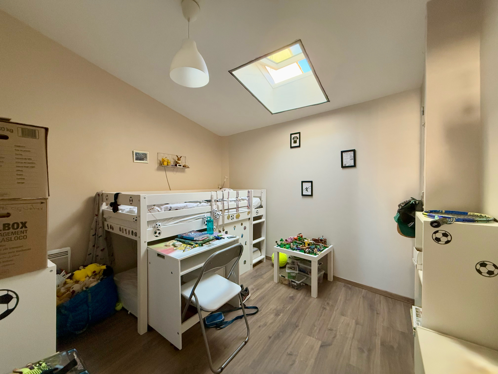 Sur l'étage, vous retrouverez une 2ème chambre et une pièce de vie lumineuse de plus de 30 m2 ouvrant sur un balcon.