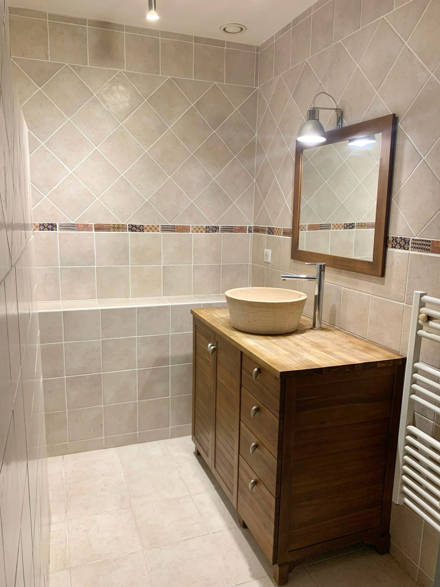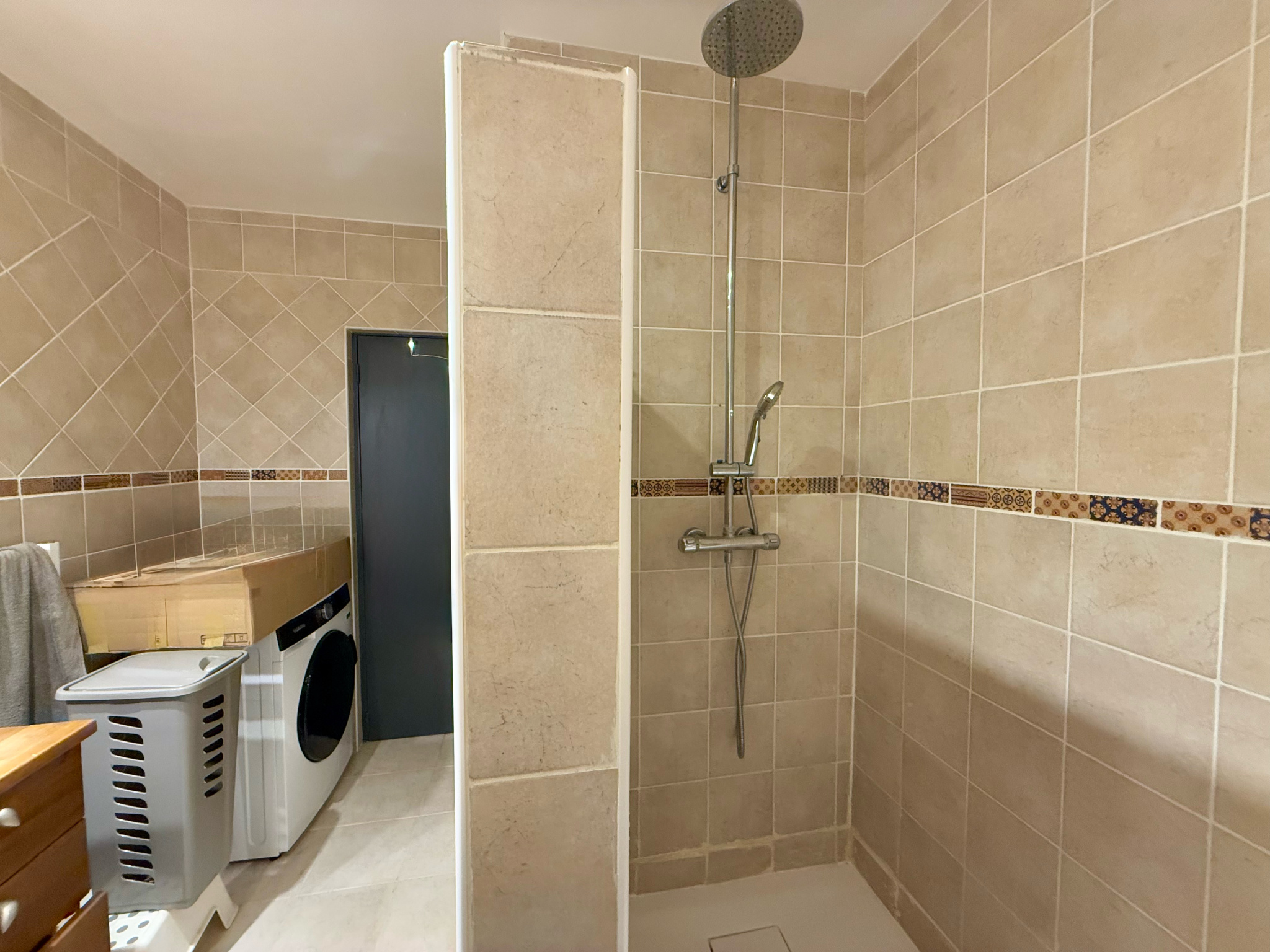 Au rez-de-chaussée : une chambre, une salle d'eau rénovée cet été avec sa douche à l'italienne, un dressing de 5 m2 et un cellier, très pratique pour pouvoir mettre vos vélos, un 2ème congélateur, le sapin de Noël ... ( bref tout votre petit bazar :) ).